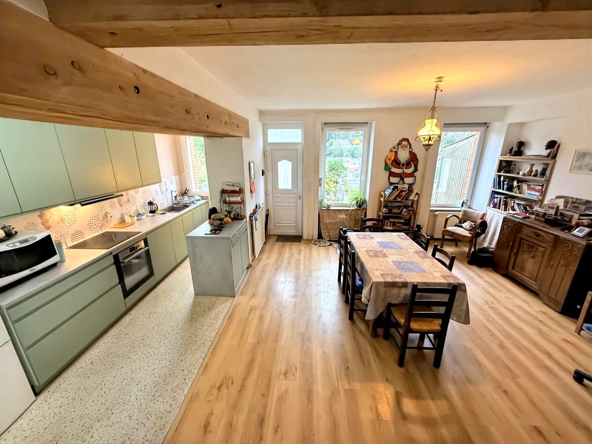 - au rez de chaussée: sejour-salon ouvert sur cuisine aménagée et équipée (40m2)