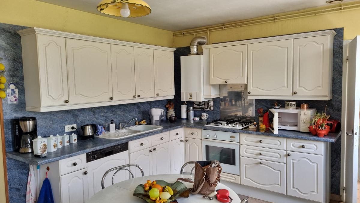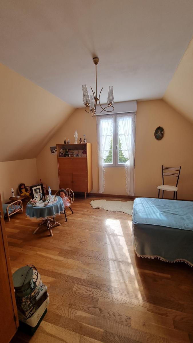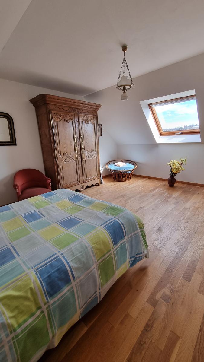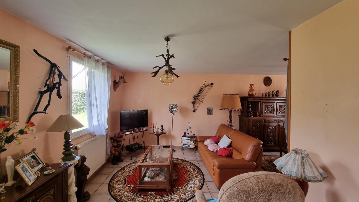 Au rez-de-chaussée : une véranda, une entrée, un grand séjour/salon, une cuisine aménagée et équipée, une salle de bains, un wc, une chambre avec placards.