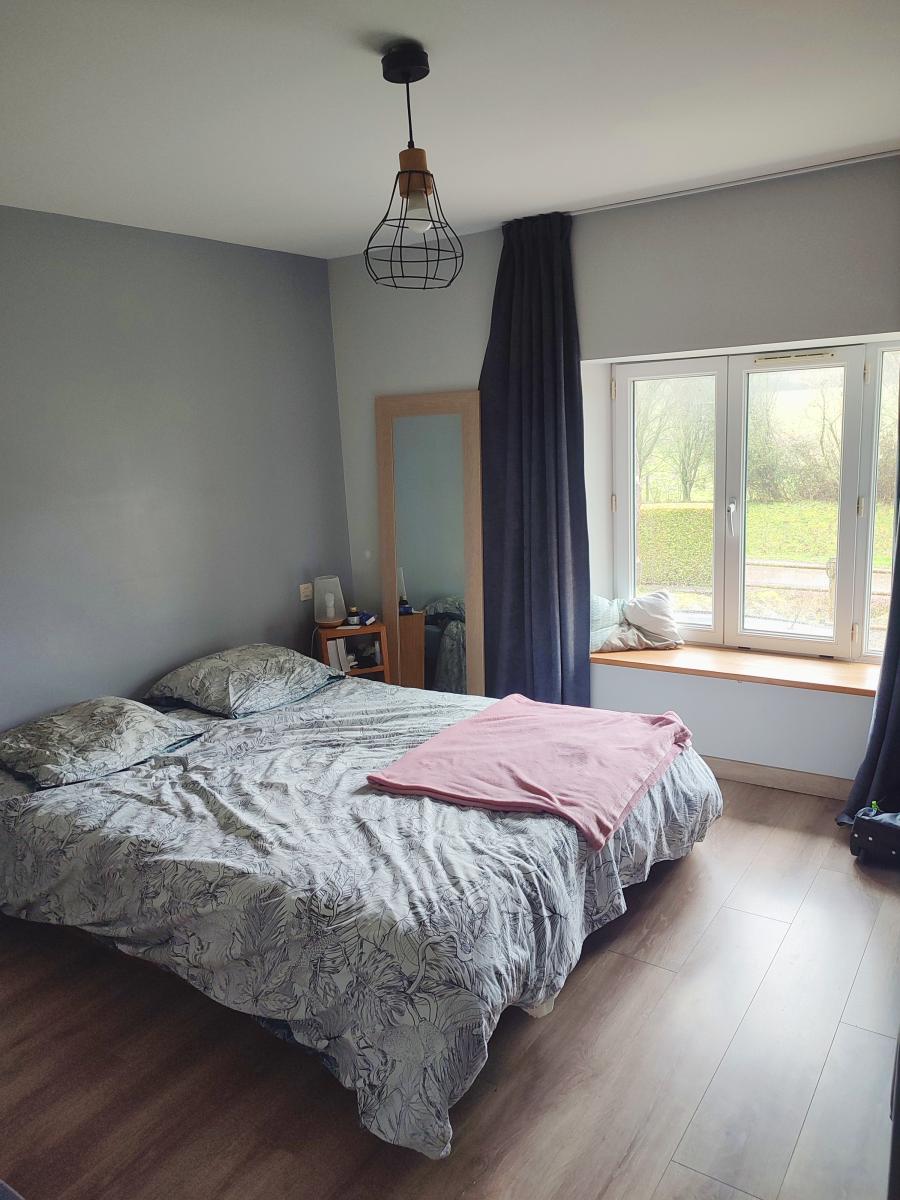 Au rez-de-chaussée : séjour/salon avec poêle à bois ouvert sur la cuisine aménagée et équipée, buanderie, wc.