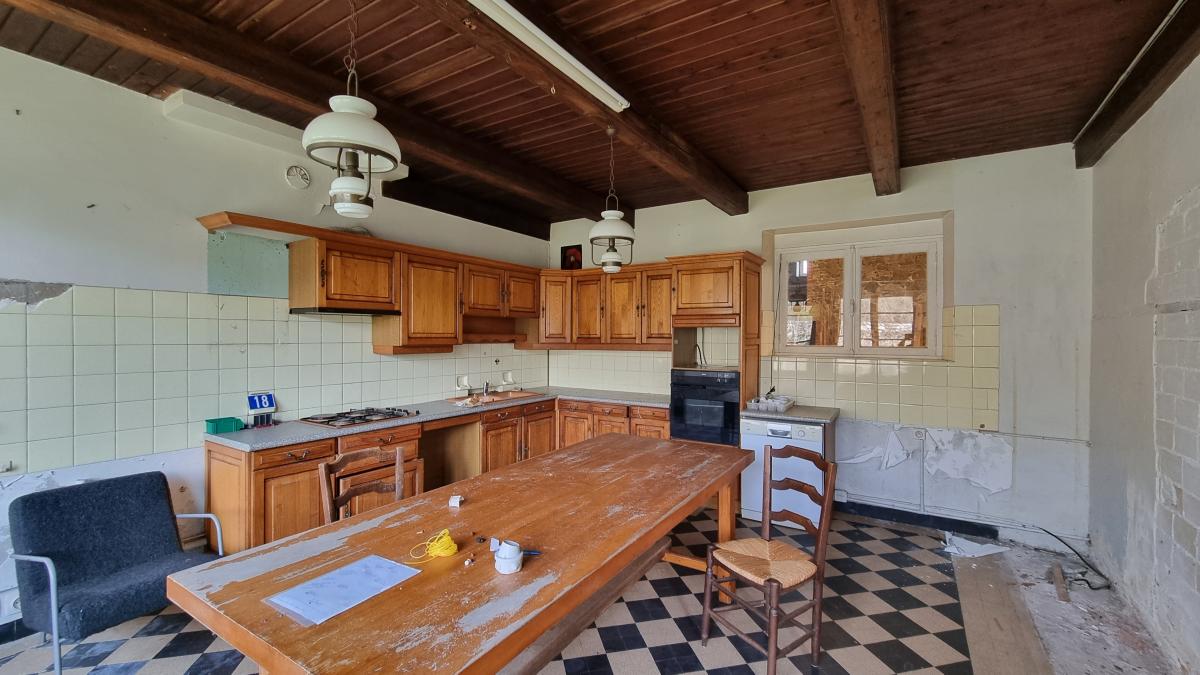 Au rez-de-chaussée : entrée, cuisine aménagée, séjour / salon avec cheminée, dégagement, cellier, wc, salle de bains, une pièce.