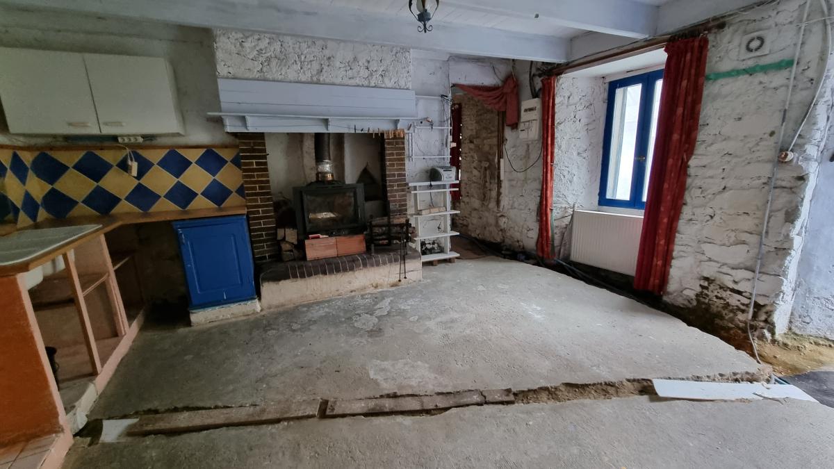 Au rez-de-chaussée : une pièce avec cheminée, une autre pièce accédant à l'étage.