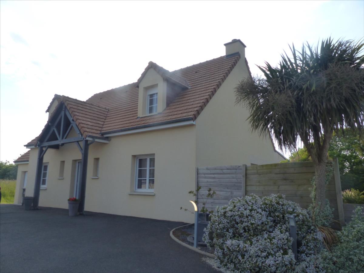 A 6 km de la station balnéaire de Barneville-Carteret et 12 km de Les Pieux, nous vous proposons ce pavillon de 2005 avec cour bitumée, terrain clos avec portail électrique, comprenant : entrée avec escalier donnant sur la salle-salon lumineuse avec poêle à bois et cuisine aménagé et équipée, buanderie, wc suspendus, garage avec fosse et grenier.Etage : palier, wc, salle de bains (baignoire et douche), 3 chambres.