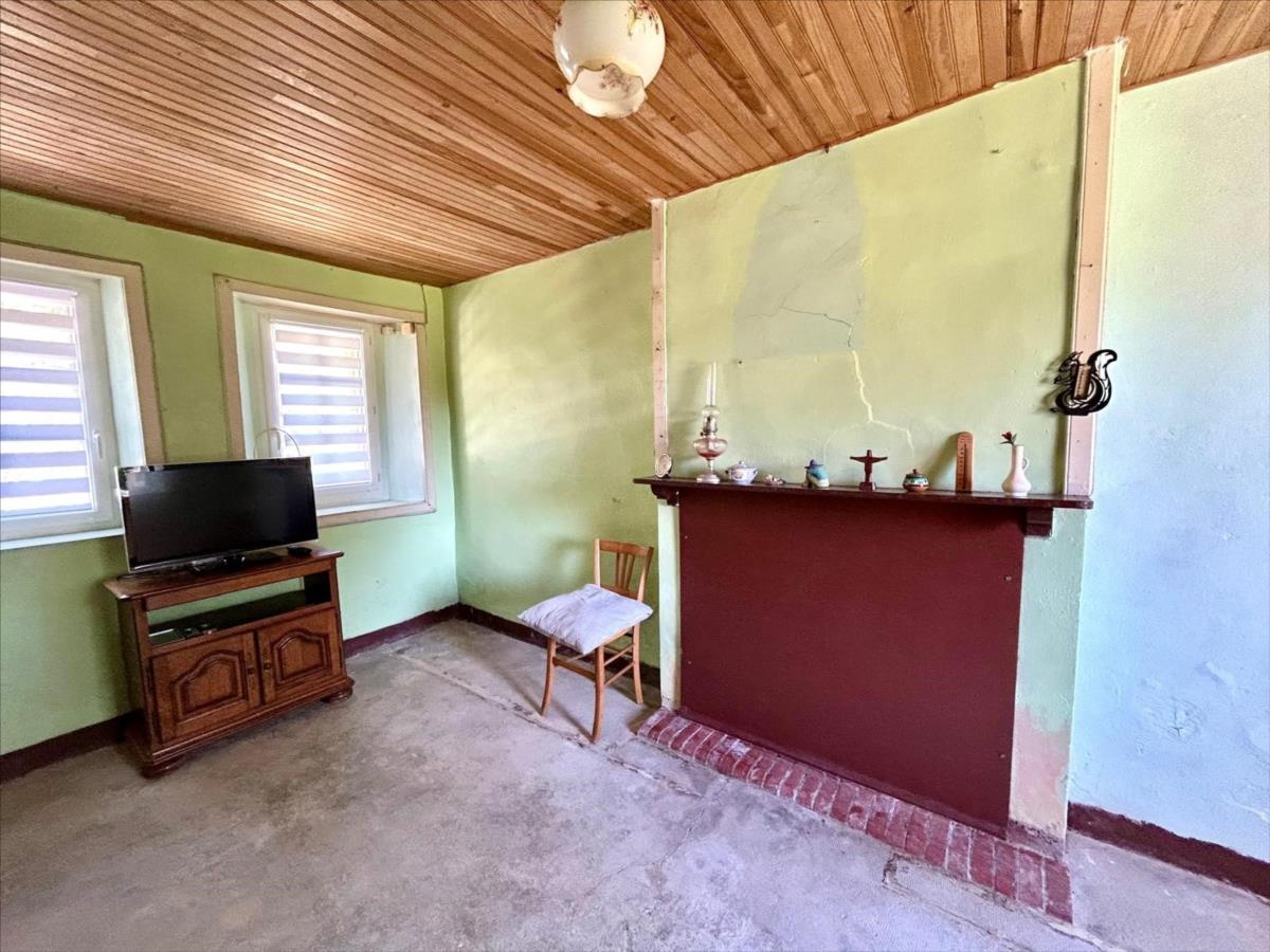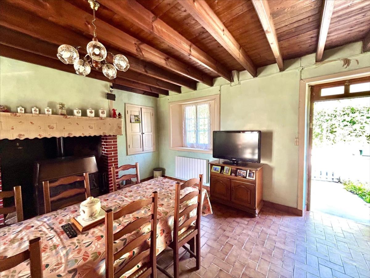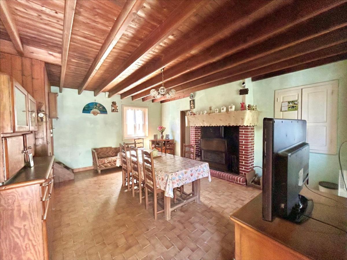 pièce à vivre avec le charme de l'ancien avec sa cheminée et son poêle, cuisine, chambre (autonomie de plain-pied), dégagement desservant salle d'eau, Wc.