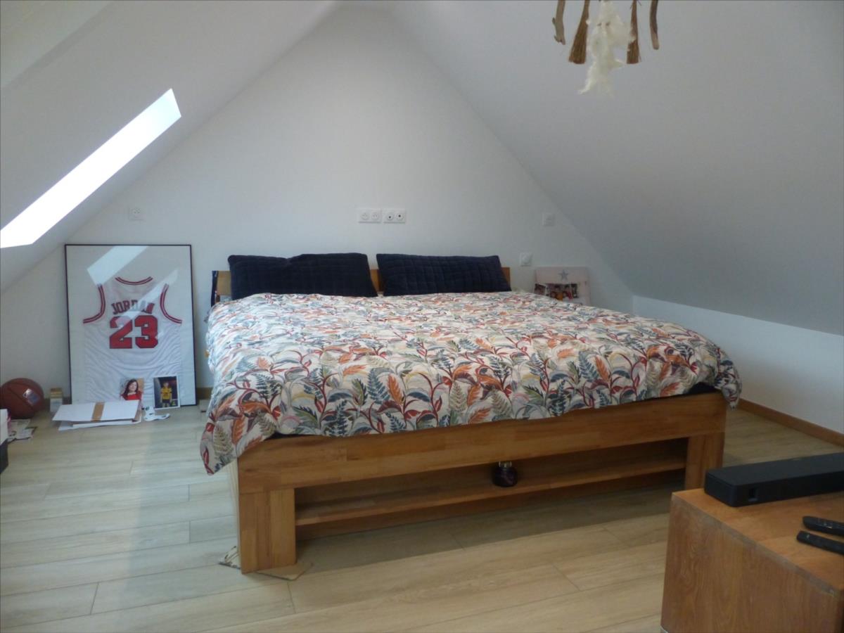 granulés, couloir avec placard, chambre, wc, salle d’eau, buanderie. A l'étage : chambre parentale avec