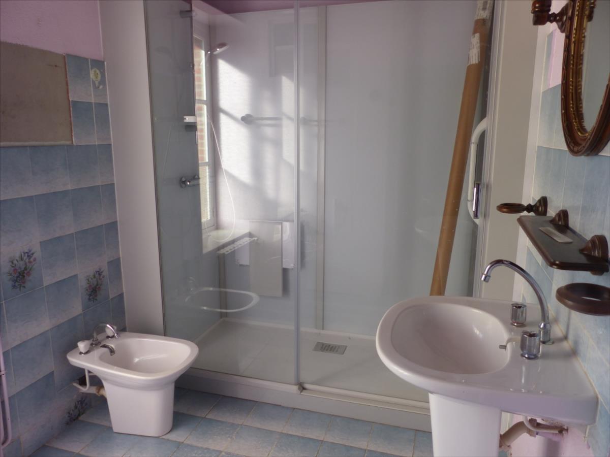 salle d’eau, salon. A l’étage : palier/couloir, 2 chambres, pièce. A l’étage : grenier.