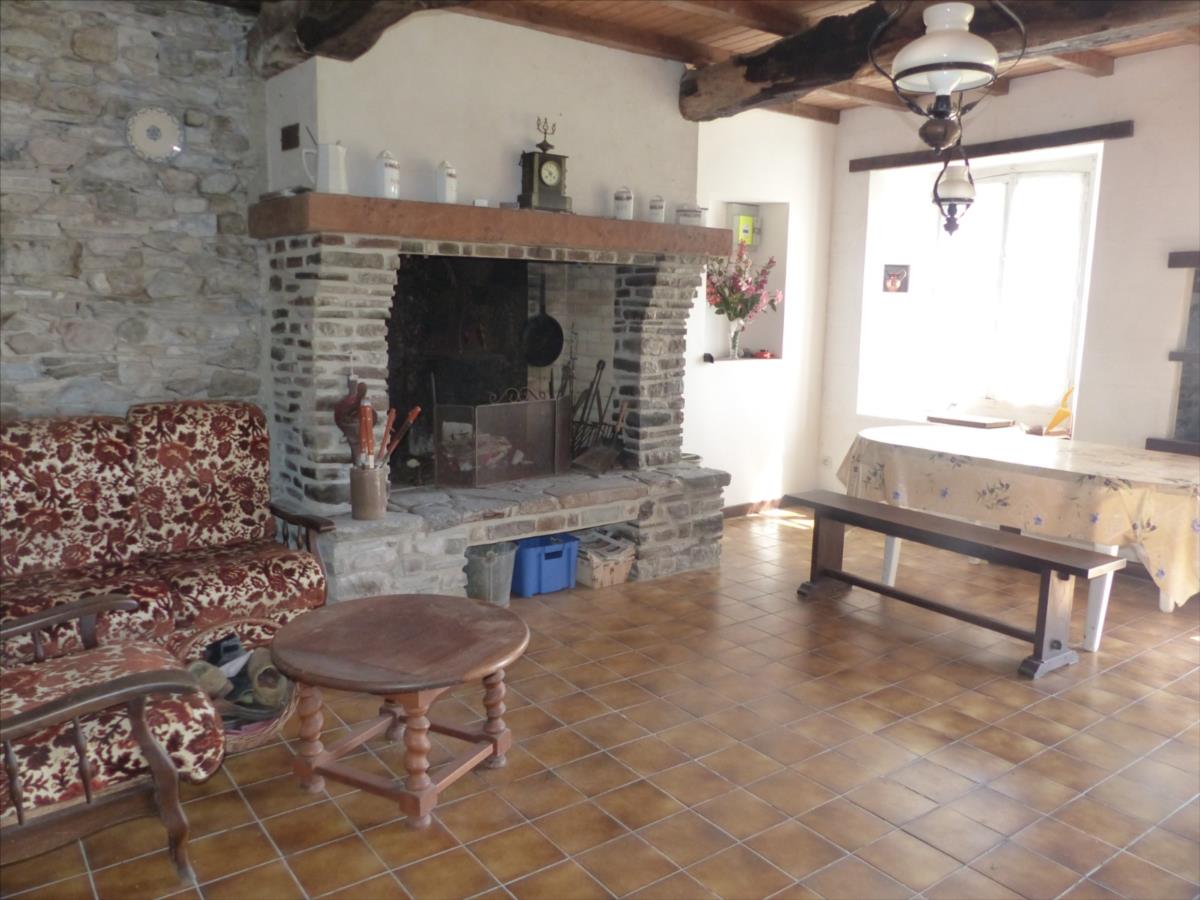 couverte en ardoises losange amianté, comprenant : pièce de vie avec cheminée, petite cuisine, wc, 3 chambres, salle d'eau. Garage.A l'étage : Grenier.Logement 2 : Maison en pierres,