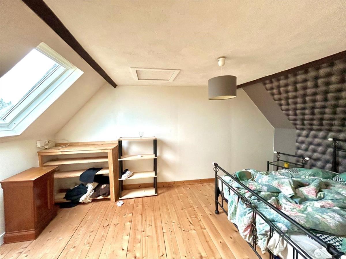 A l'étage, palier distribuant une grande chambre (pouvant facilement être divisée en deux petites chambres d'enfants comme à l'origine) , chambre parentale avec grand dressing/bureau attenant (pouvant devenir une 3ème chambre traversante)
