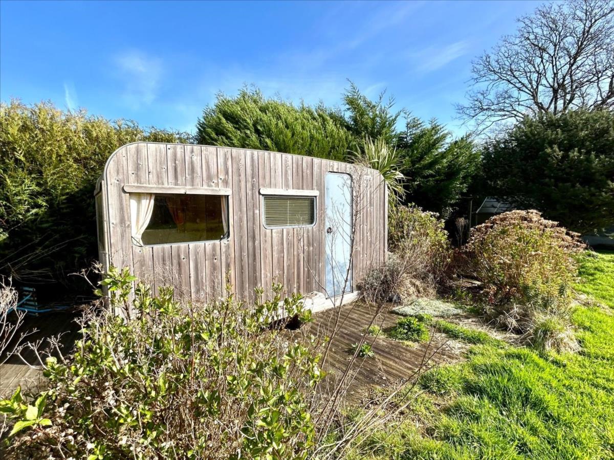 VENDUE AVEC LE BIEN : Adorable caravane 'vintage 70's ' bardée de bois avec sa petite terrasse privative attenante pouvant être la 'maison' pour les enfants ou un bureau dans le jardin !