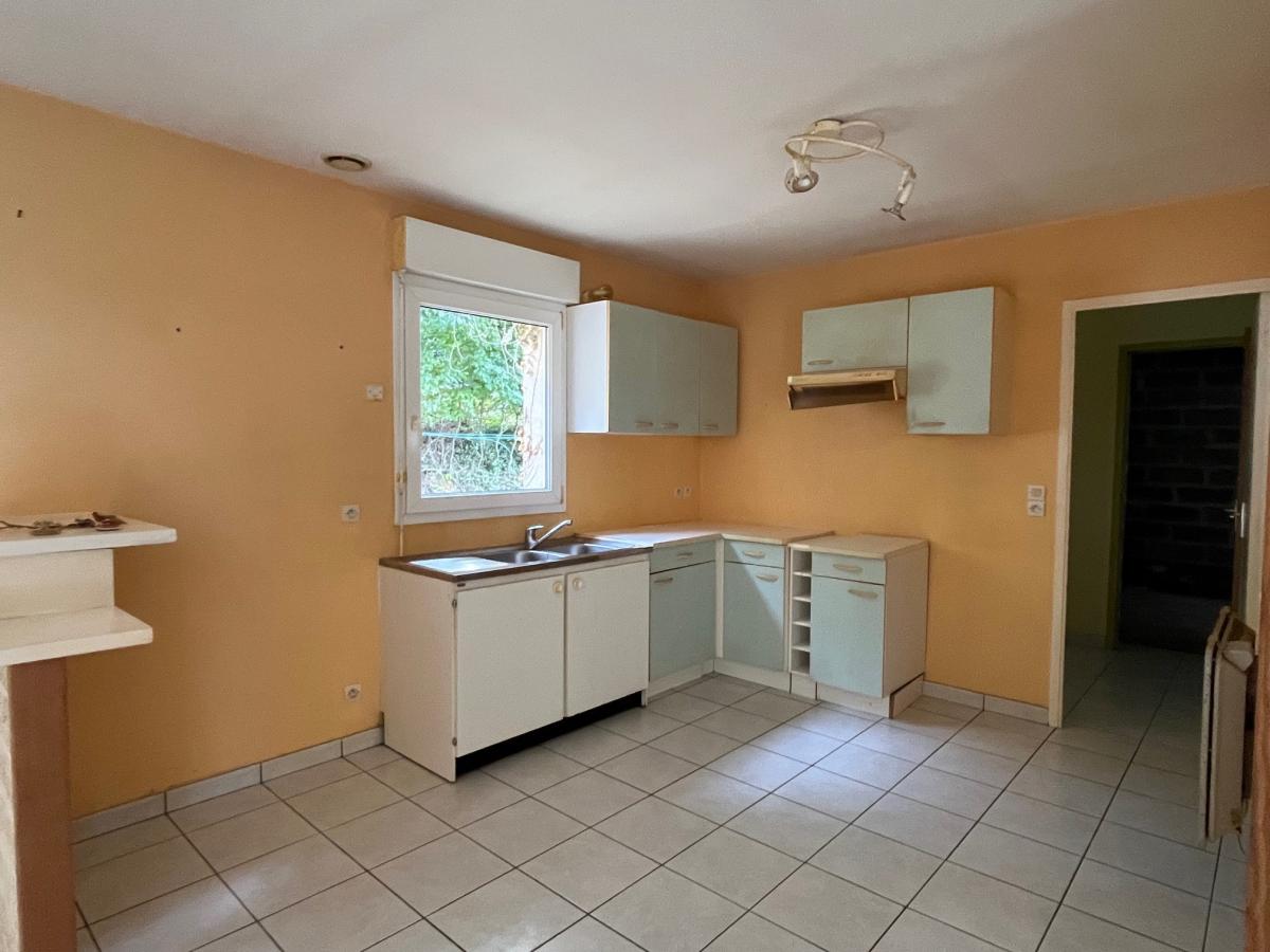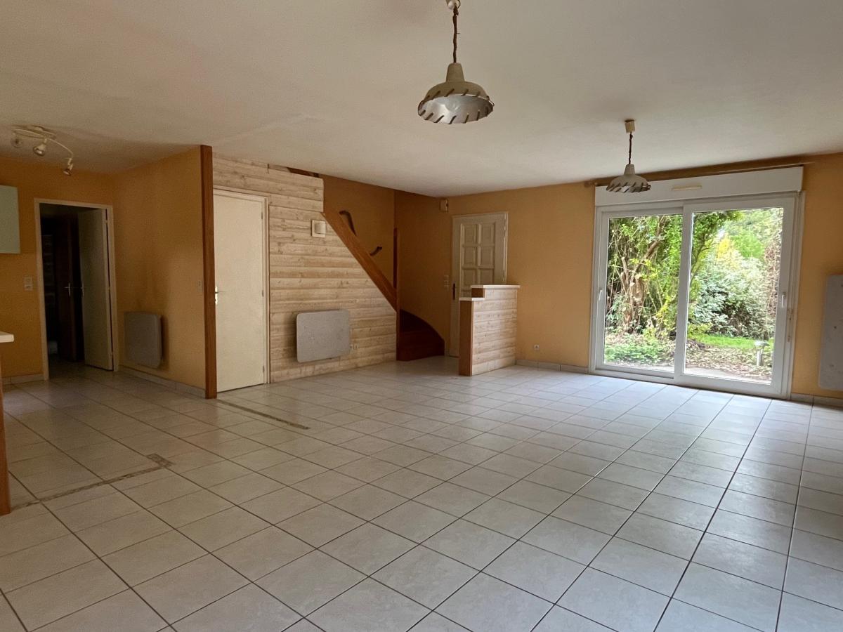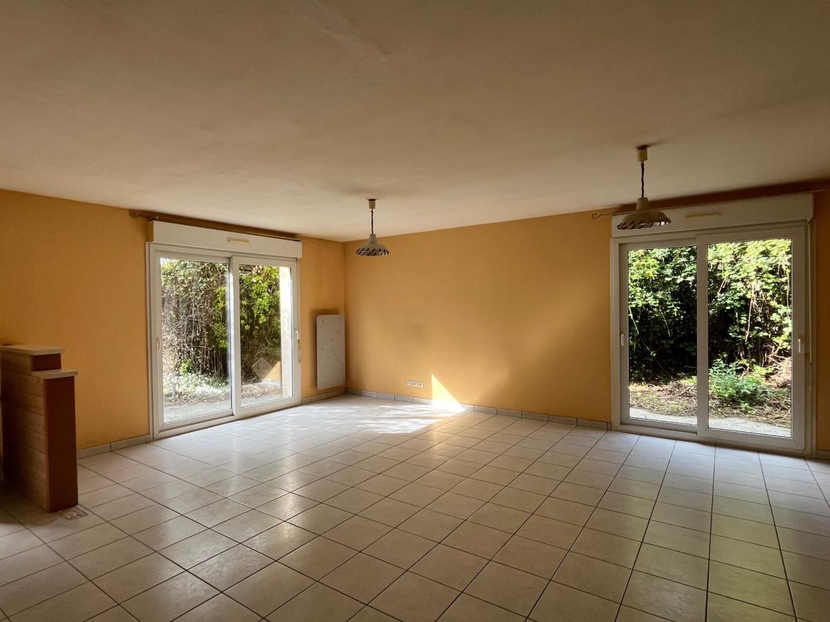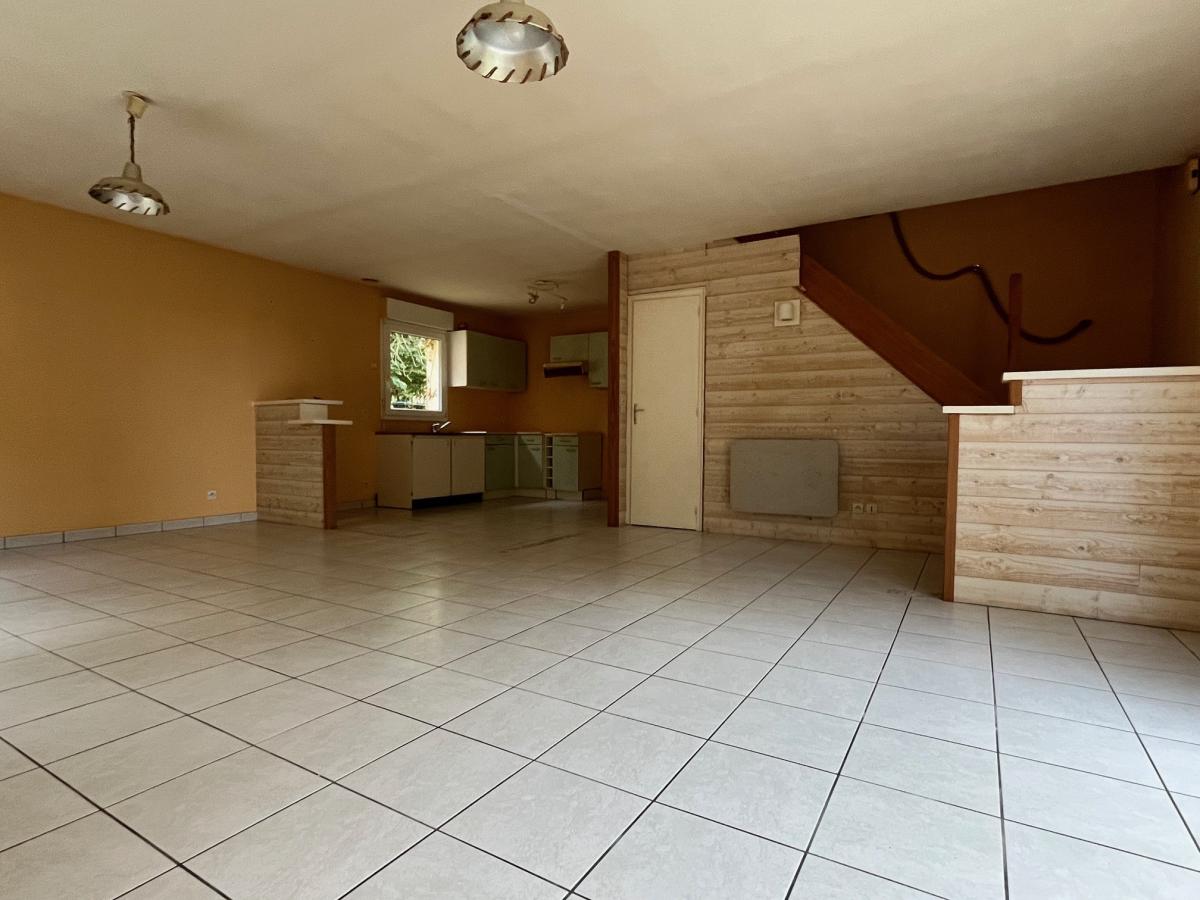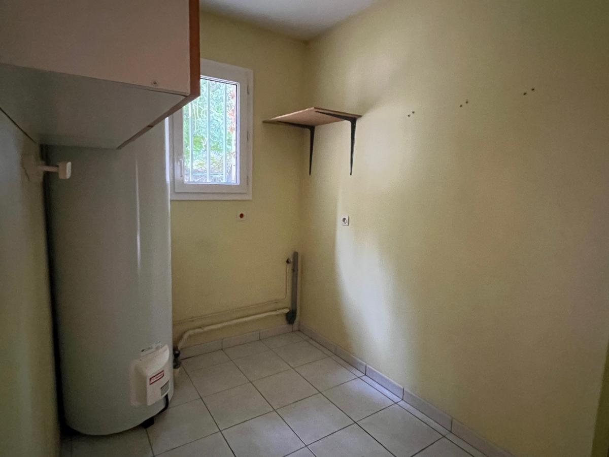 Cuisine ouverte sur salle à manger et salon, buanderie, une chambre, wc.