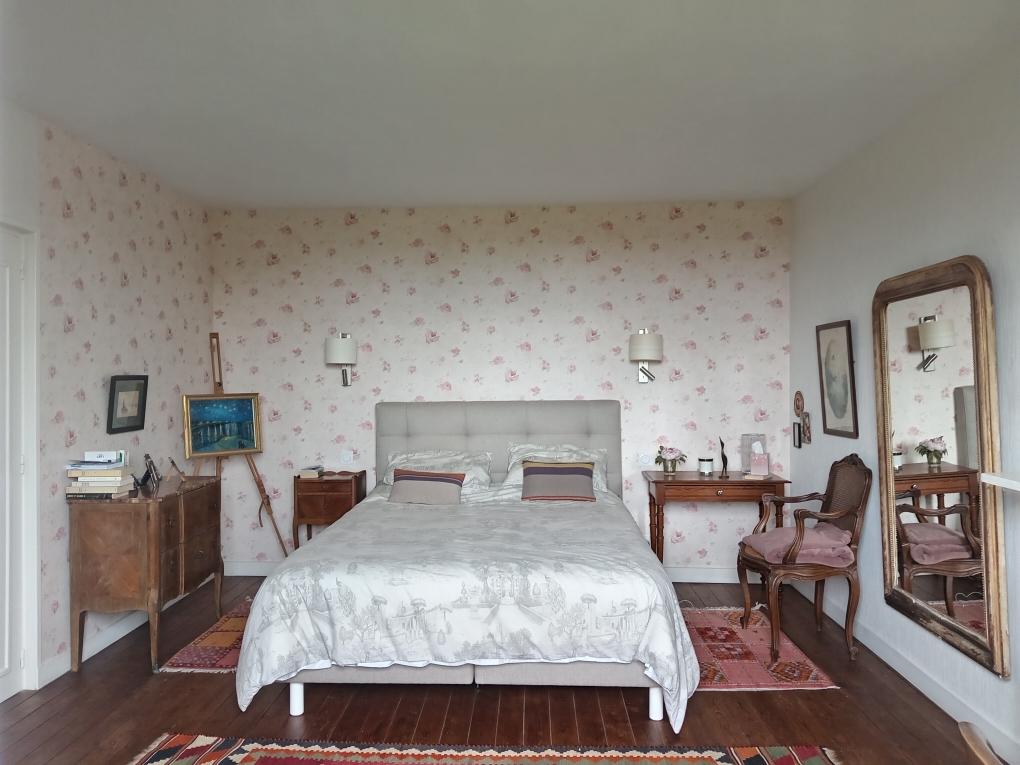 A l'étage : une mezzanine, chambre de 19m².
