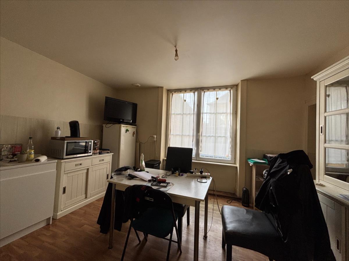 Dans le centre-ville un immeuble commercial composé:- au rez-de-chaussée: un local professionnel avec magasin et laboratoire.- au 1er étage: cuisine, séjour, bureau et salle d'eau/toilette.- au 2ème étage: une chambre, bureau et cellier.Pas de jardin ni cour.Travaux à prévoir.Chauffée avec des radiateurs électriques et sa taxe foncière est de 1221 €.