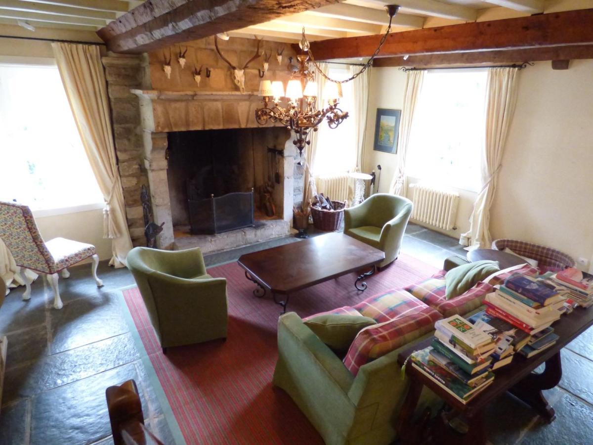 - Au rez de chaussée: entrée, salle à manger en rotonde, séjour avec cheminée, cuisine équipée, dégagement, débarras, WC avec lavabo, buanderie, une petite chambre, garage.