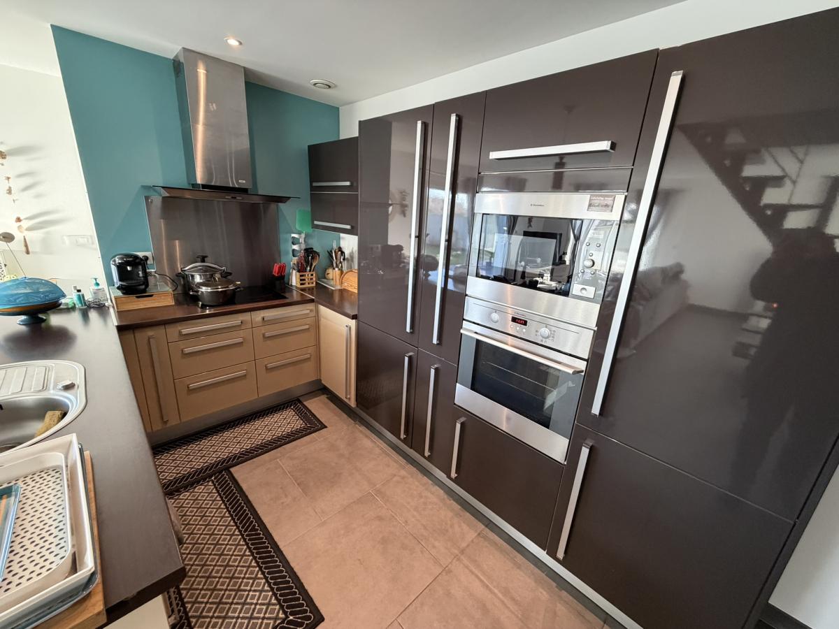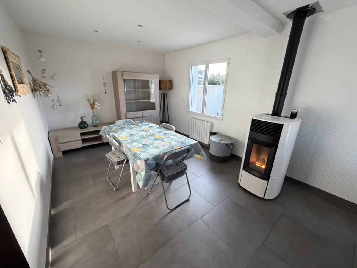 - Au rez de chaussée: entrée avec placard, grand séjour avec poêle à granulés connecté et cuisine ouverte équipée, WC, salle d'eau avec douche à l'italienne, lingerie, garage.