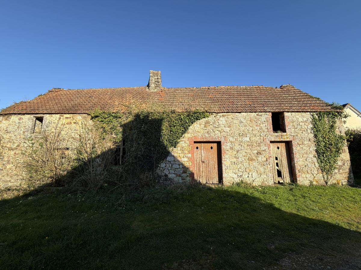 BRICQUEBEC, dans un hameau à 4,5 km du bourg, ensemble de granges à restaurer avec terrain. Présence d'une arrivée d'eau. Non transformable en habitation.