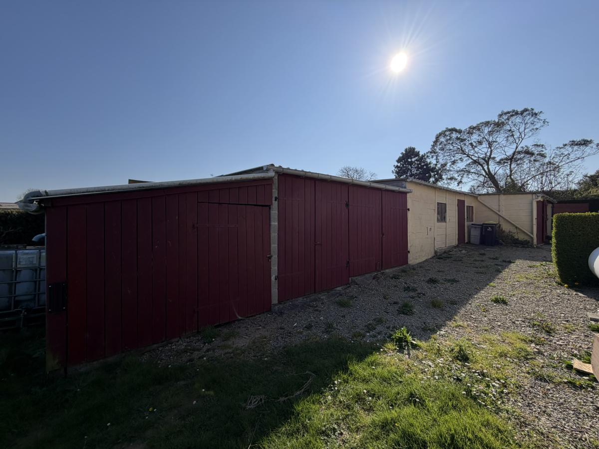 Jardin autour avec dépendance comprenant deux garages, trois celliers et bucher.