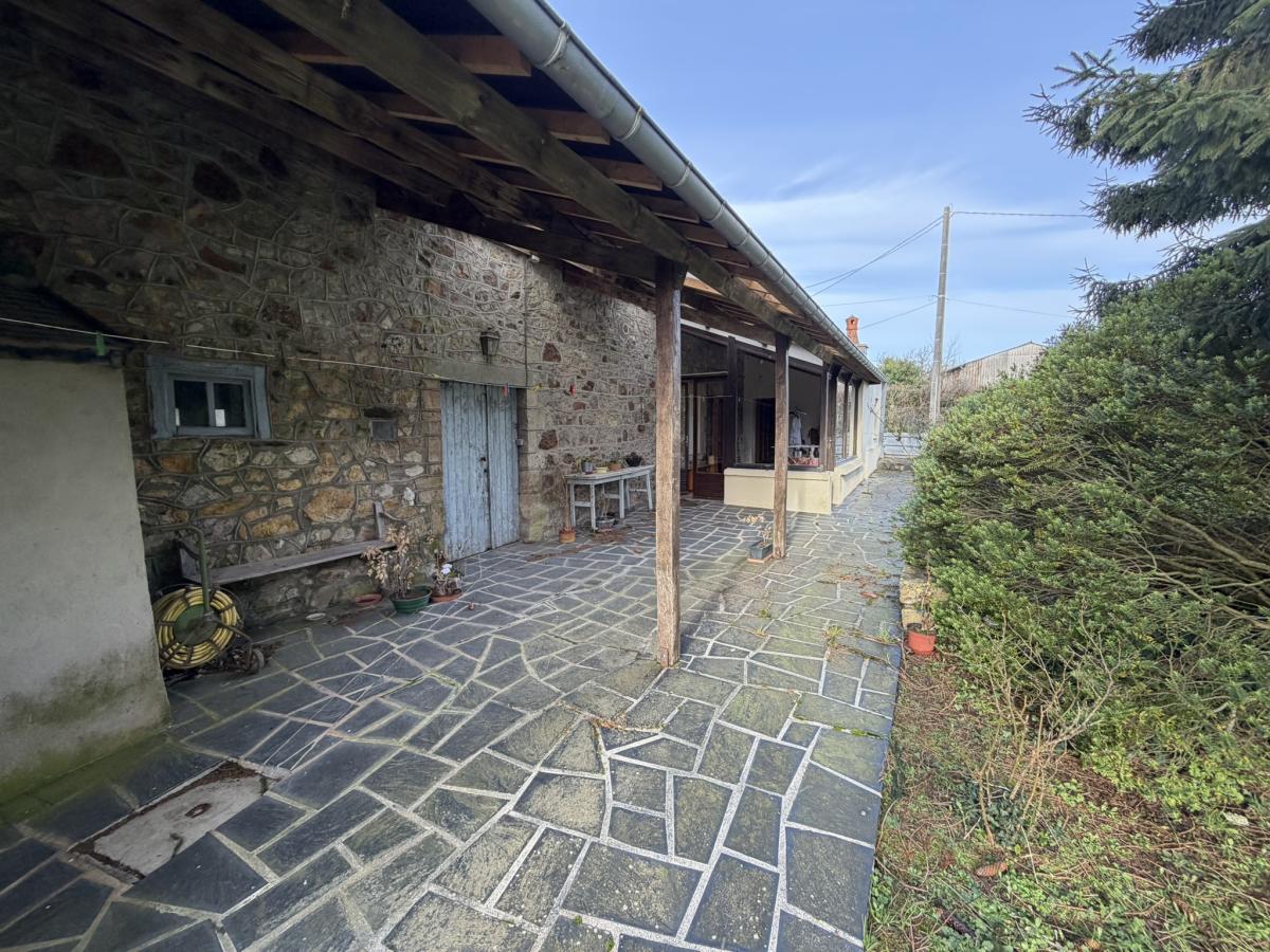 - Au rez de chaussée : entrée, cuisine, salle à manger avec cheminée, une chambre avec placard et cabinet de toilette (WC + lavabo), salon en véranda avec cheminée, arrière-cuisine/buanderie, préau à la suite avec WC extérieur.