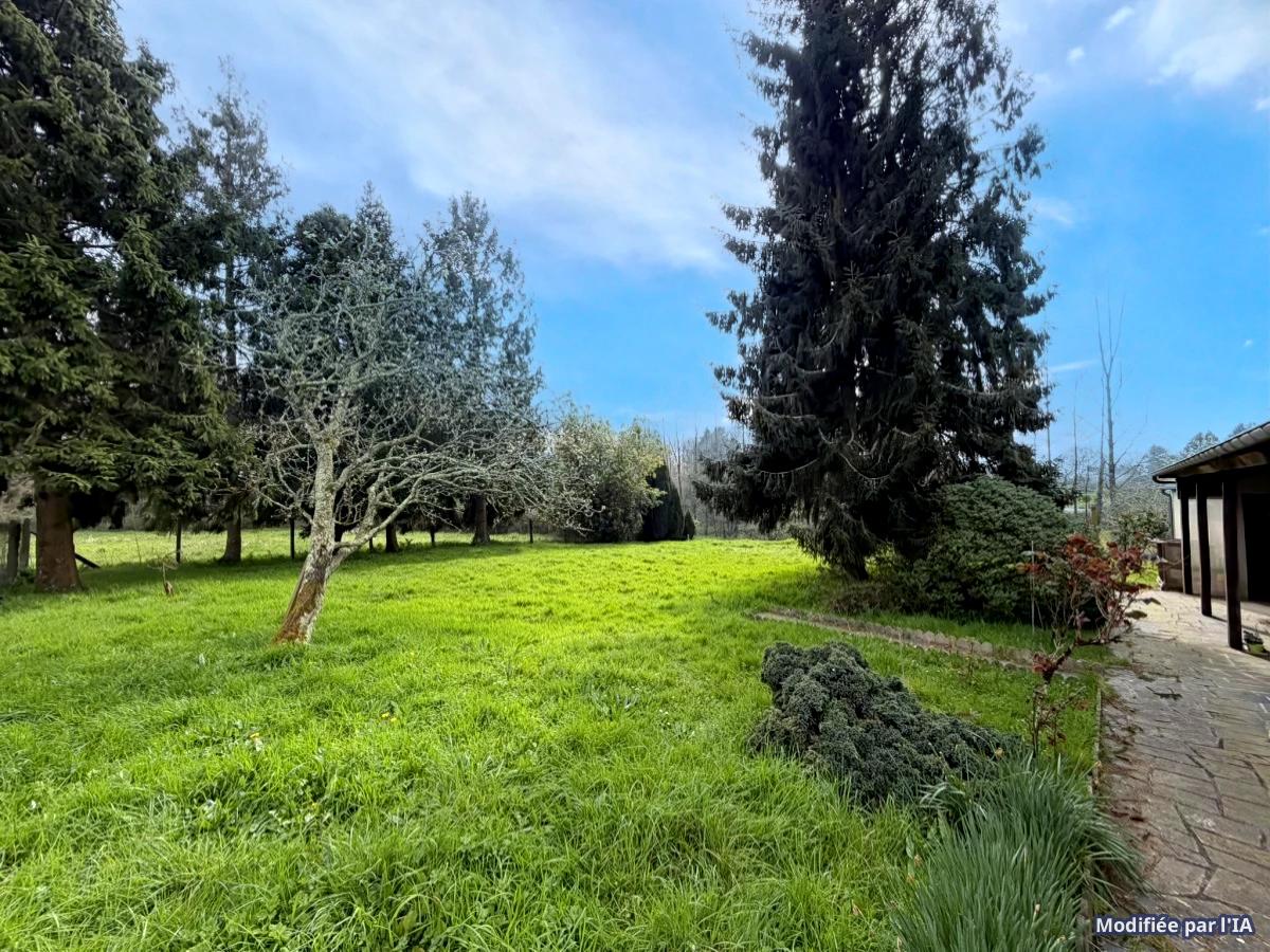 - Jardin derrière et sur le côté traversé d’une rivière.