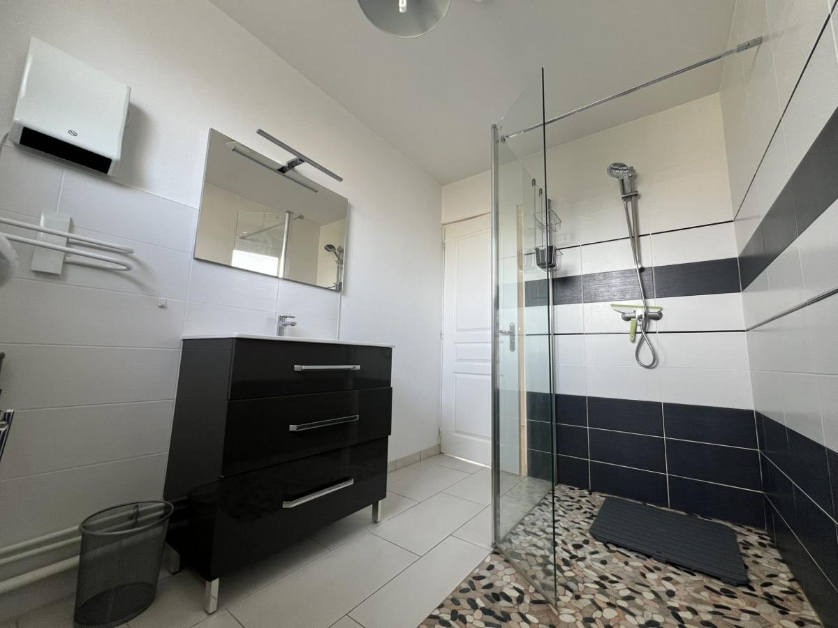 - Rez-de-chaussée : entrée avec placard, séjour, cuisine équipée, WC avec lave-mains, garage.