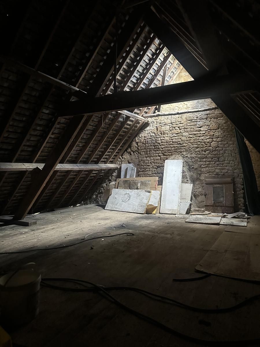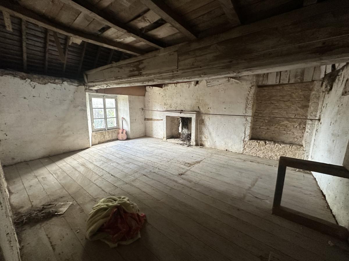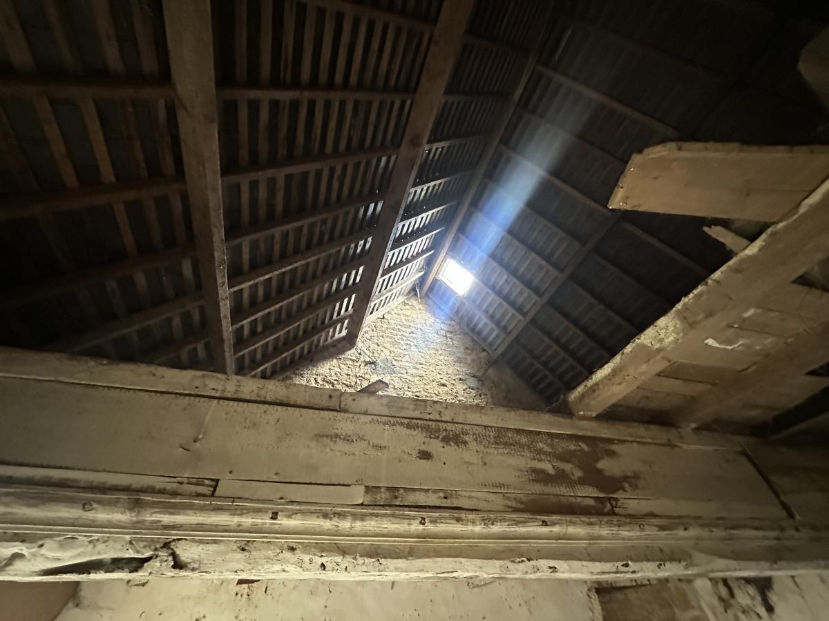 222m² aménageable + grenier sur toute la surface sur terrain d'environ 1095m². Rénovation complète à prévoir (assainissement, huisseries, électricité, isolation, toiture, installation d'un système de chauffage, rafraichissement complet)