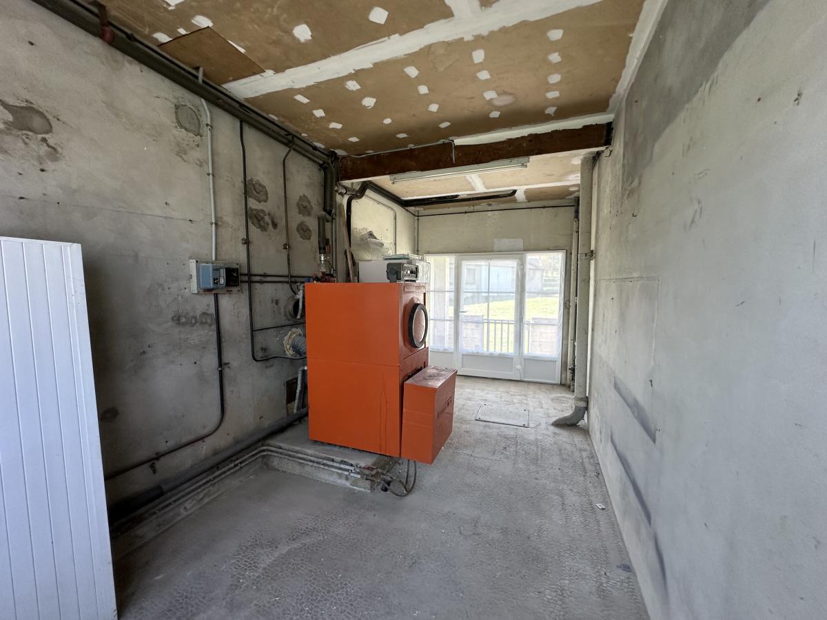 Elle vous offre au rez-de-chaussée : Une entrée, un salon/séjour, une cuisine, ancien garage attenant avec deux baies vitrées qui permet l'agrandissement du salon/séjour actuel.