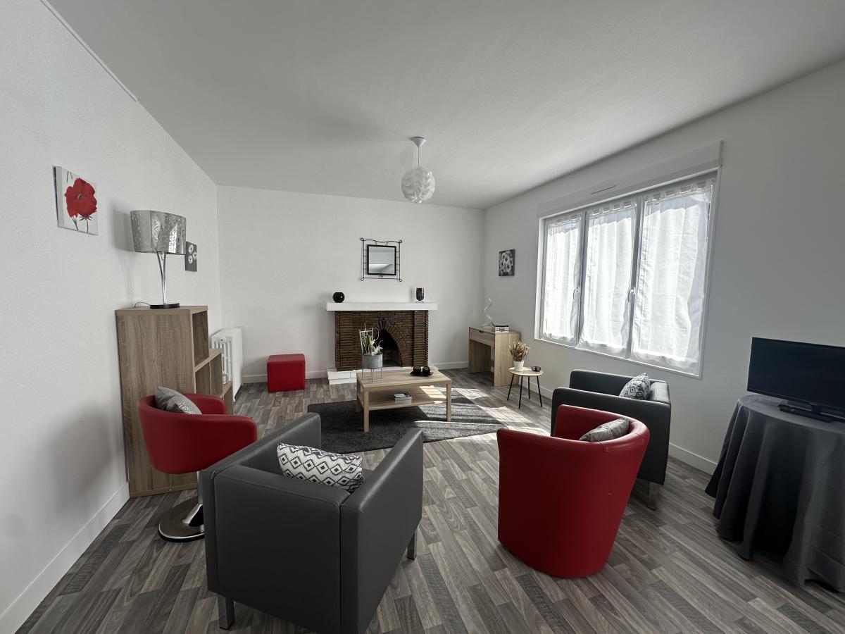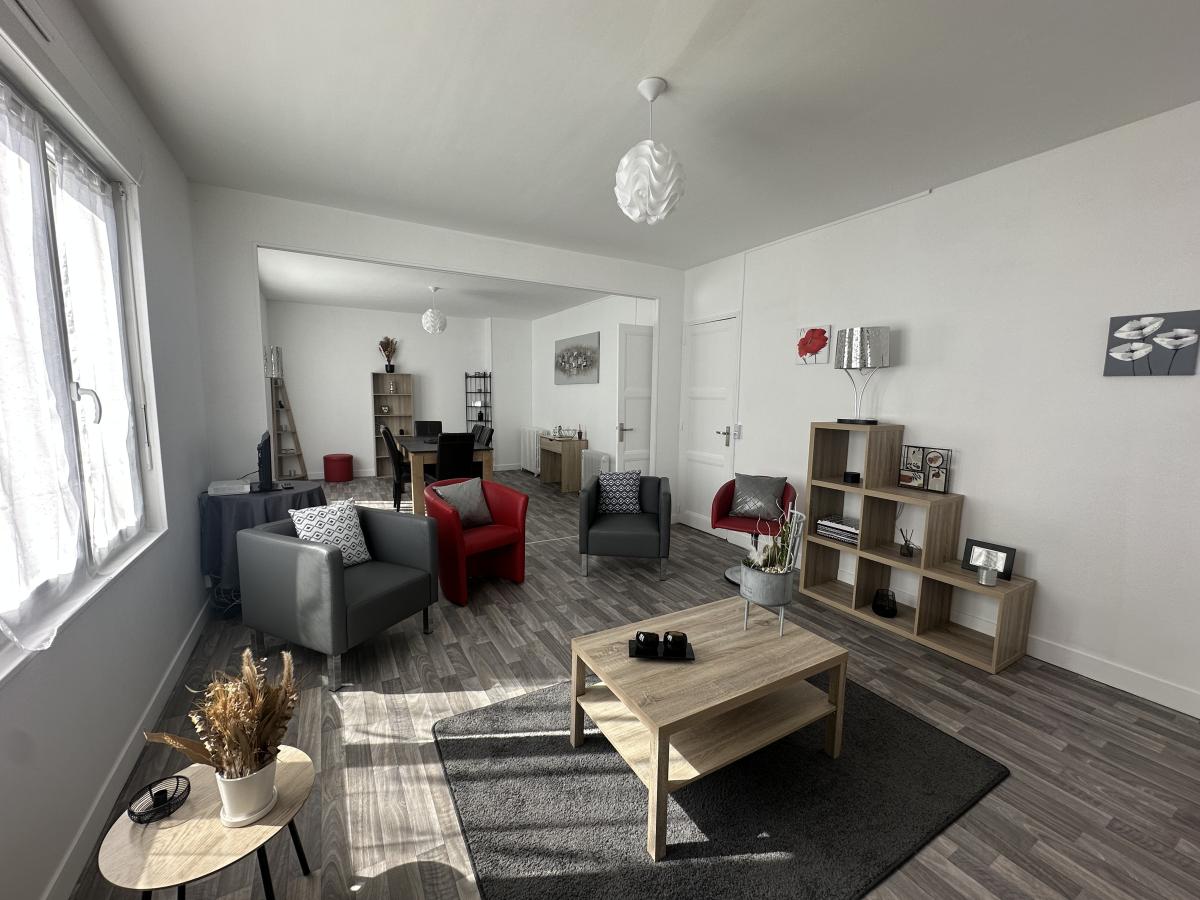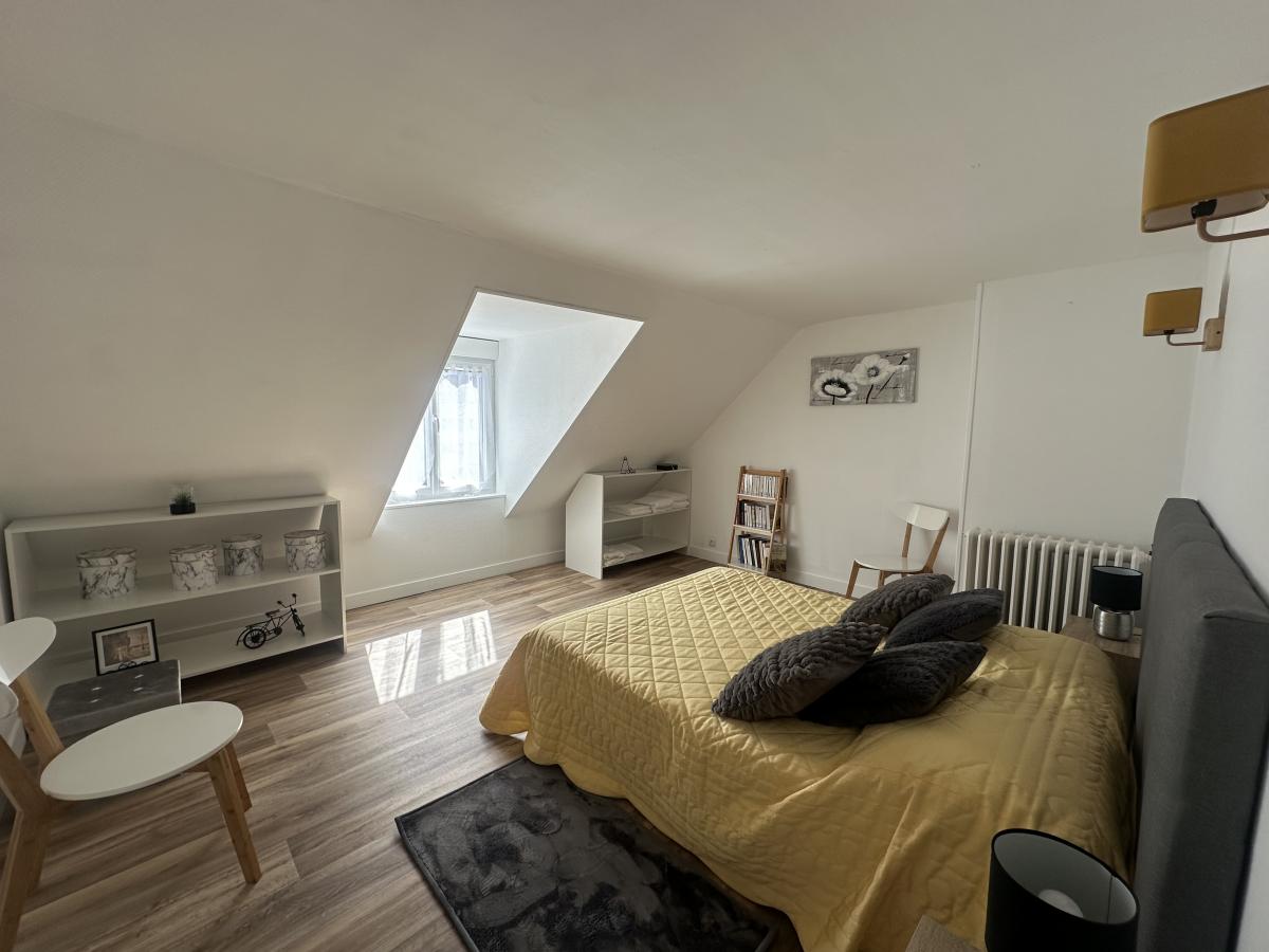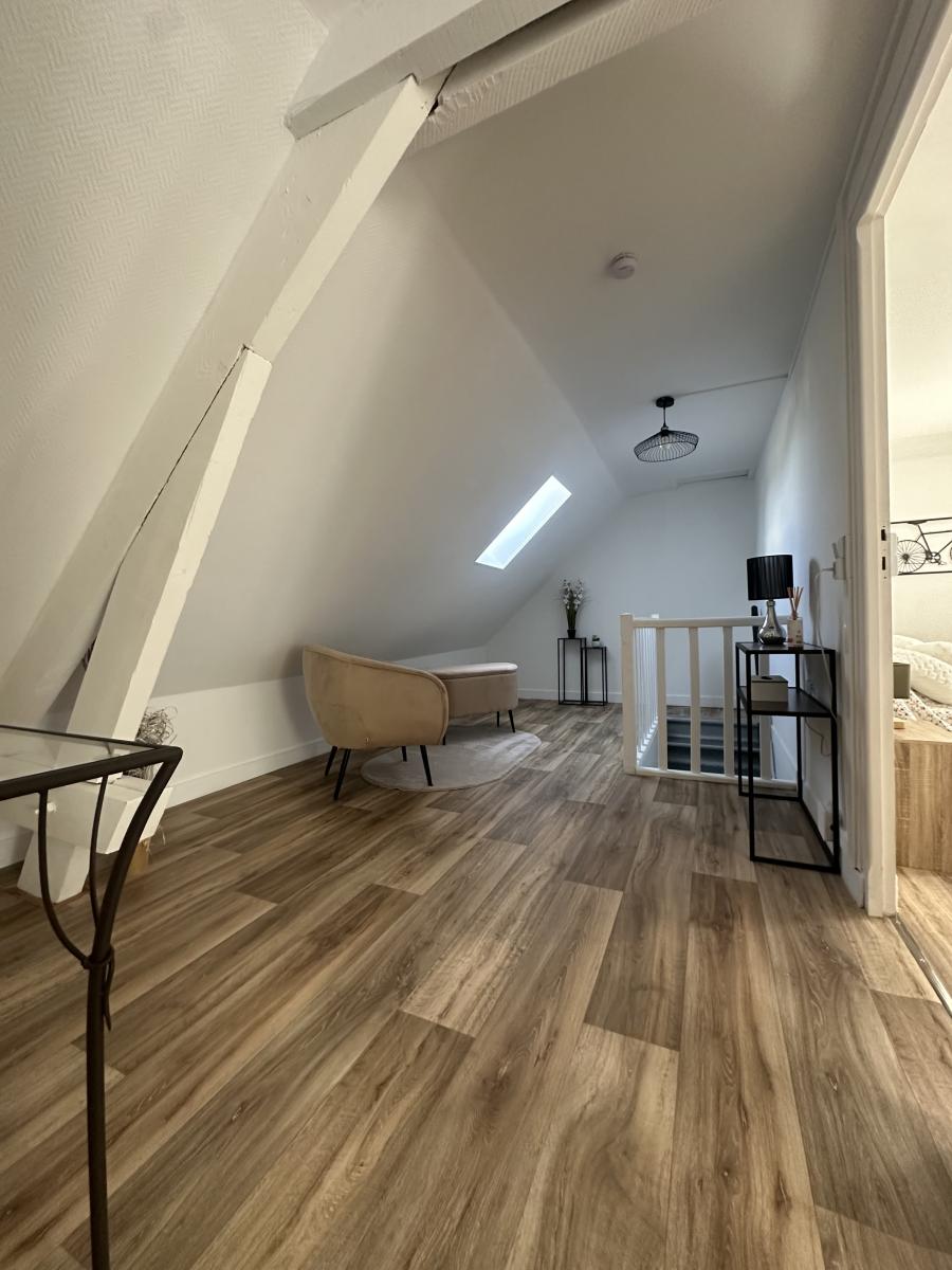 L'appartement au premier étage en duplex, rénové, vous offre : Une entrée, un beau salon/séjour de 37m², une cuisine aménagée et équipée, une chambre avec placard et un wc indépendant.
