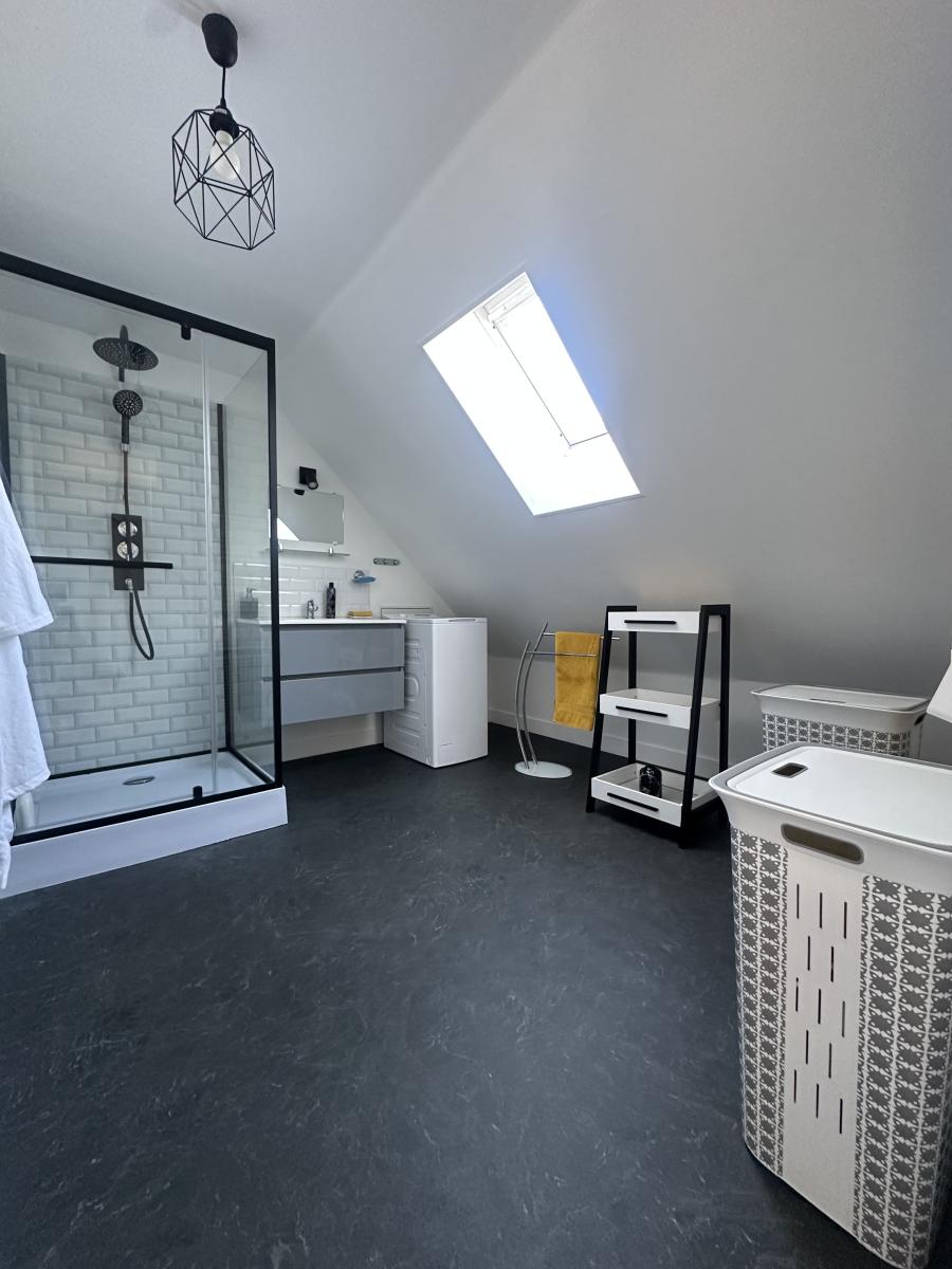 Au deuxième étage : Palier/mezzanine, deux chambres, une salle d'eau.
