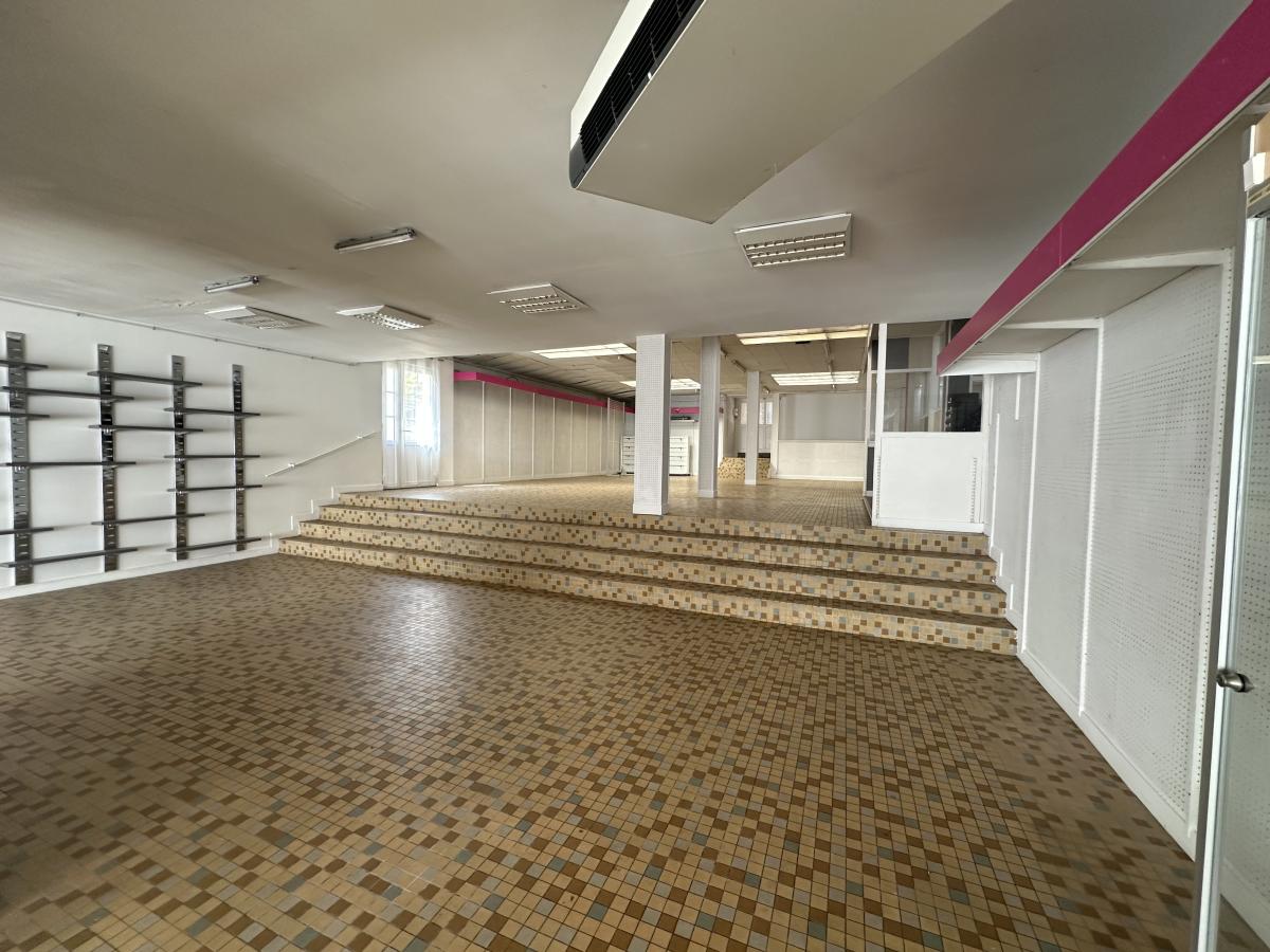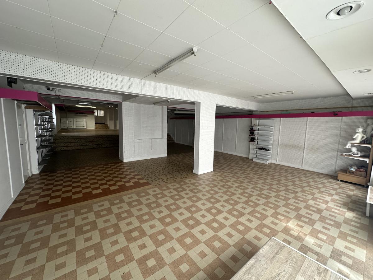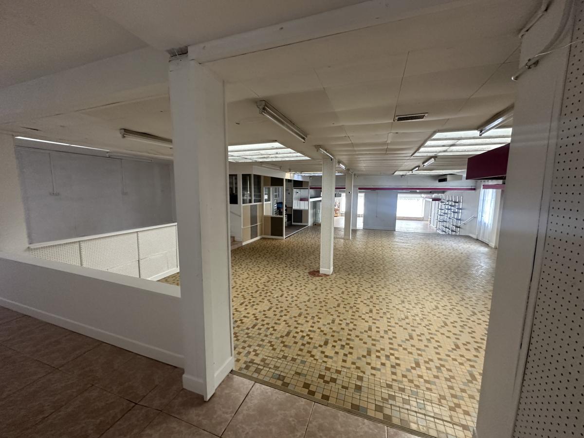 Le local commercial vous offre une surface ouverte ou de vente d'environ 214m², réserve, bureau, sanitaire, buanderie, une coursive, garage et hangar (100m²).