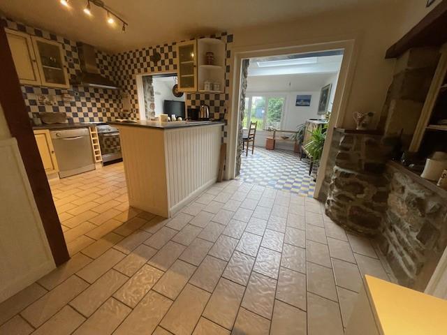 Au rez-de-chaussée : entrée avec placard, salon avec cheminée insert, dégagement, cuisine ouverte sur séjour en extension sur jardin, toilette, salle de bains.
