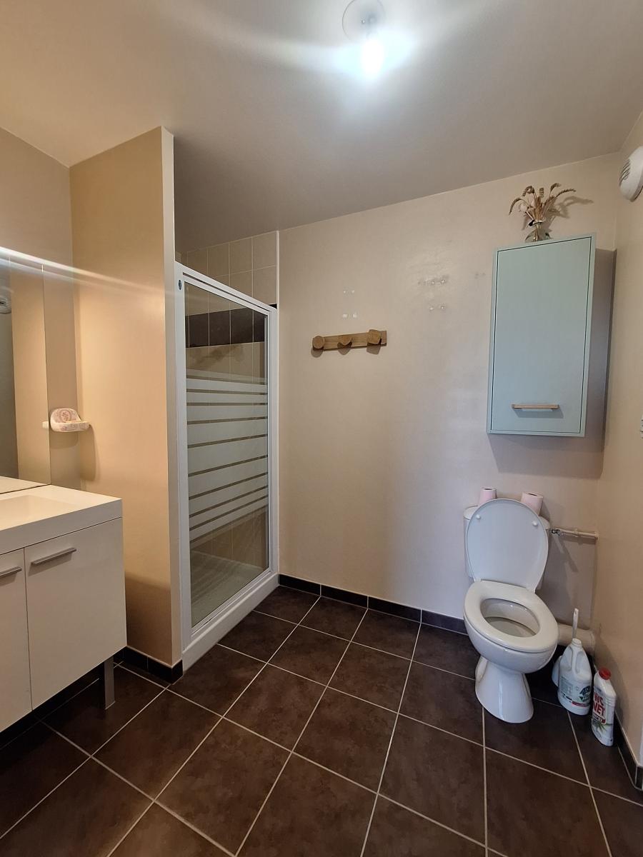 Un appartement au 4ème étage dans une résidence avec ascenseur, comprenant : une entrée, un séjour avec cuisine ouverte, une chambre, une salle d’eau avec WC, lave-linge et un balcon de 10m². Une place de stationnement dans un parking fermé réservé à la résidence. Local à vélo. Chauffage électrique individuel.