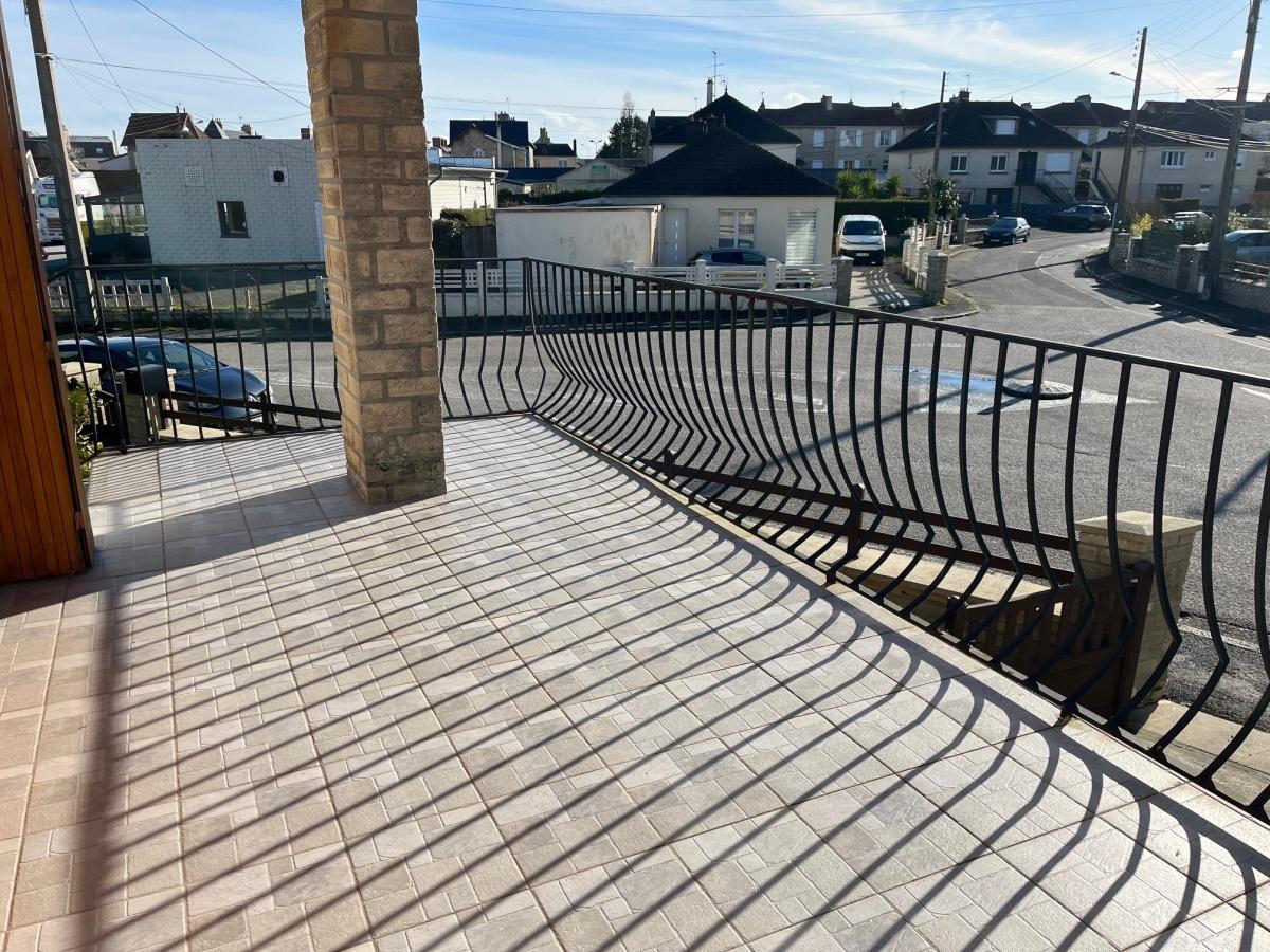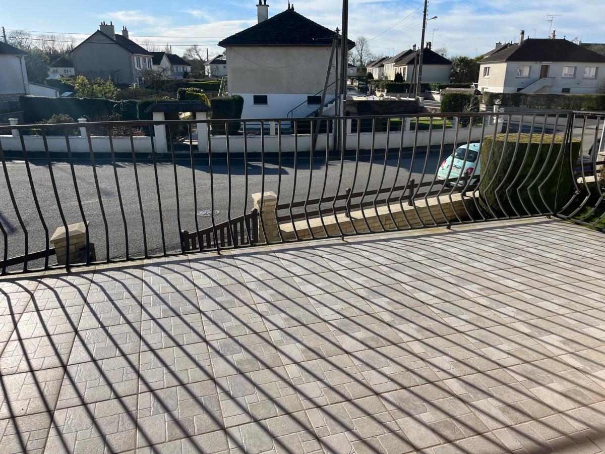 Rez de chaussée surélevé : entrée, séjour parquetée avec cheminée 27 m² donnant sur grande terrasse, cuisine aménagée 10 m², trois chambres parquetées 9 m², 10 m² et 11,5 m², salle de douches, wc,