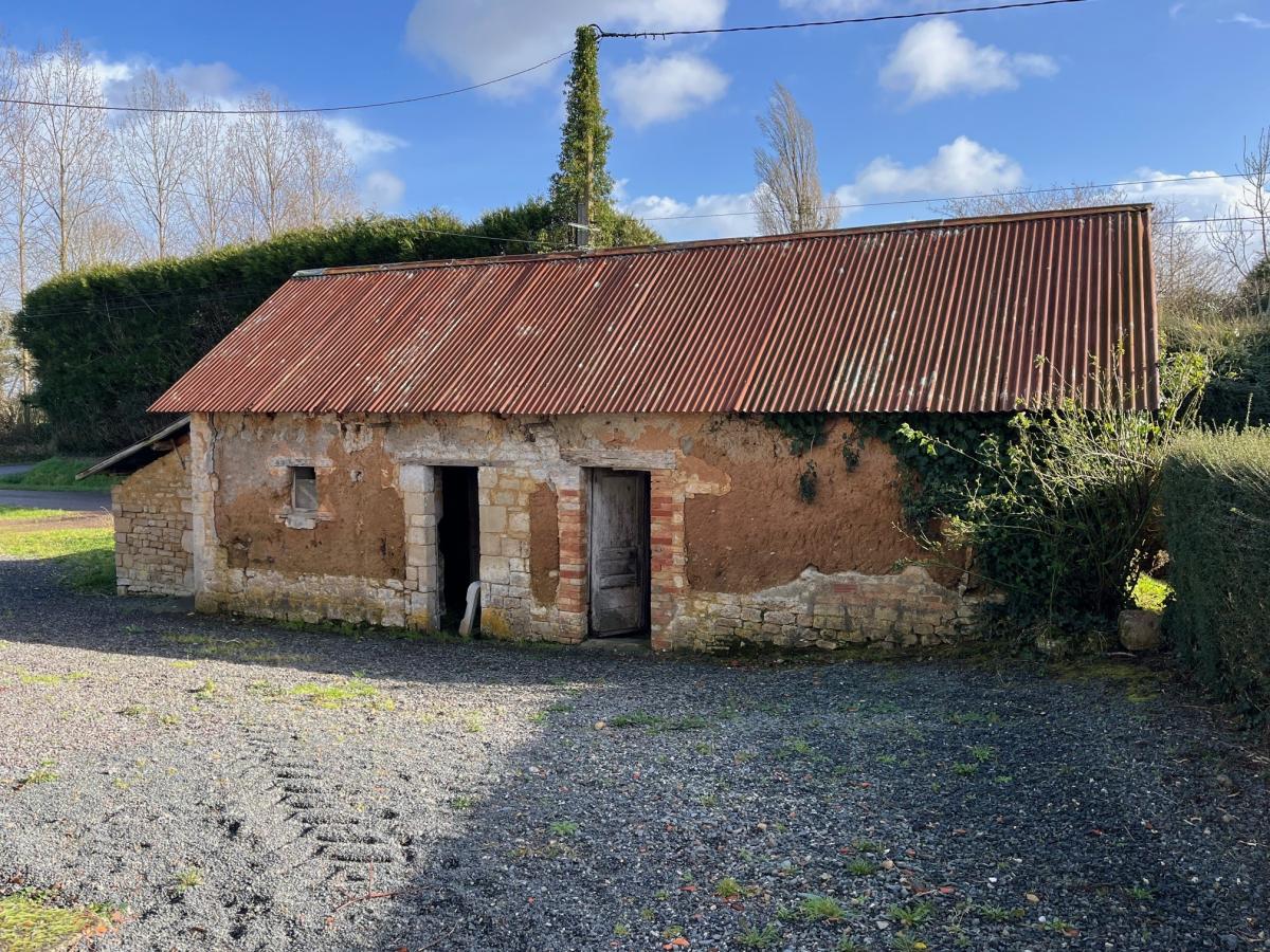 Petite dépendance en pierres et masse couverte en tôles sur le devant,