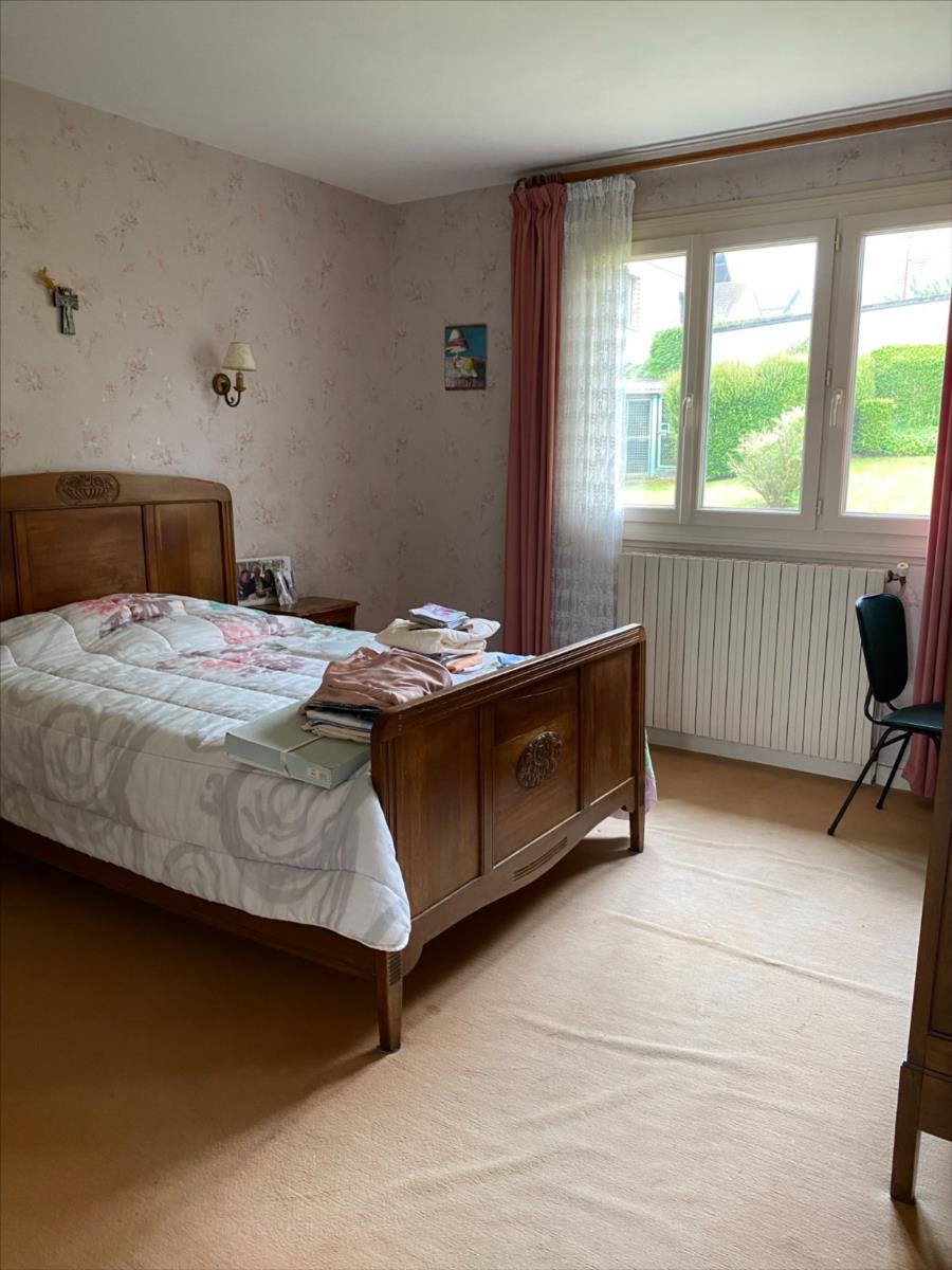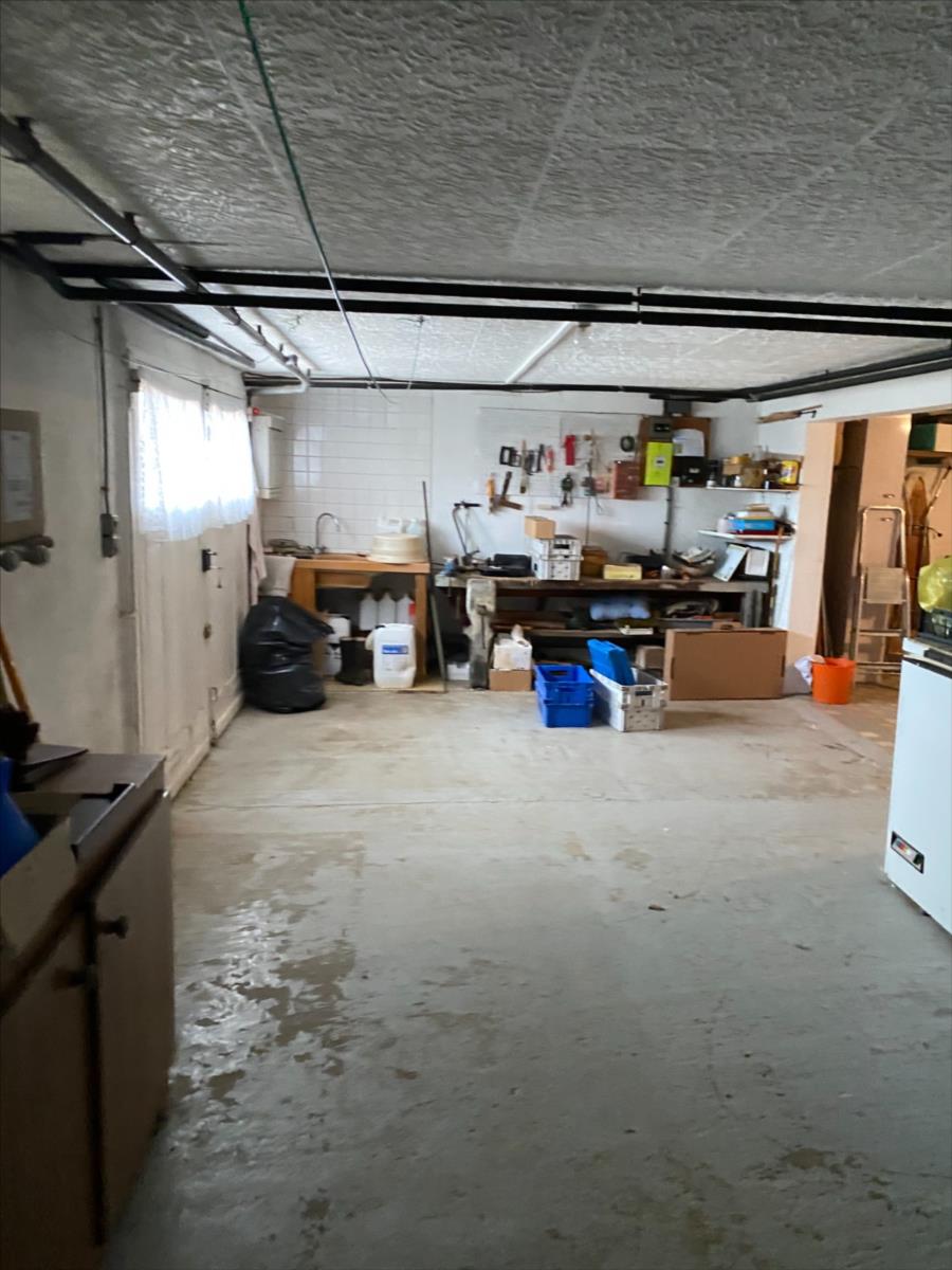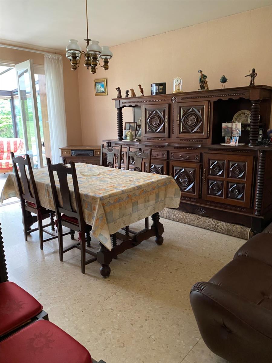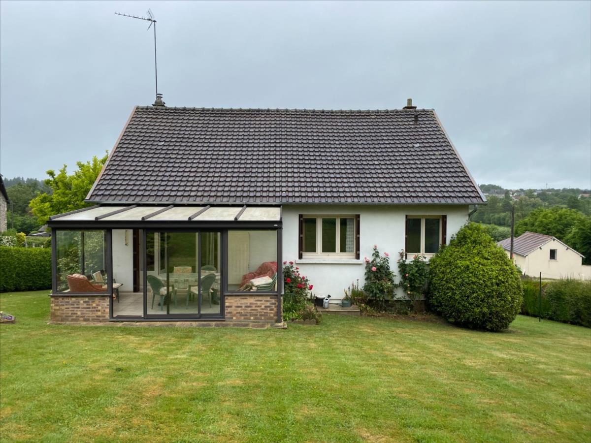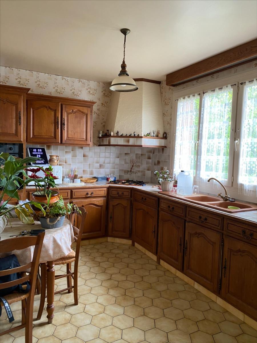 Pavillon sur sous sol construit en silex et parpaings, couverture tuiles mécaniques, comprenant:- au RDC surélevé: entrée, cuisine aménagée, séjour, véranda, couloir, 2 chambres, salle d'eau, wc.- combles perdus- s/sol: garage, atelier, chaufferie, cave.Chauffage central gaz de villeRaccordé au tout à l'égout
