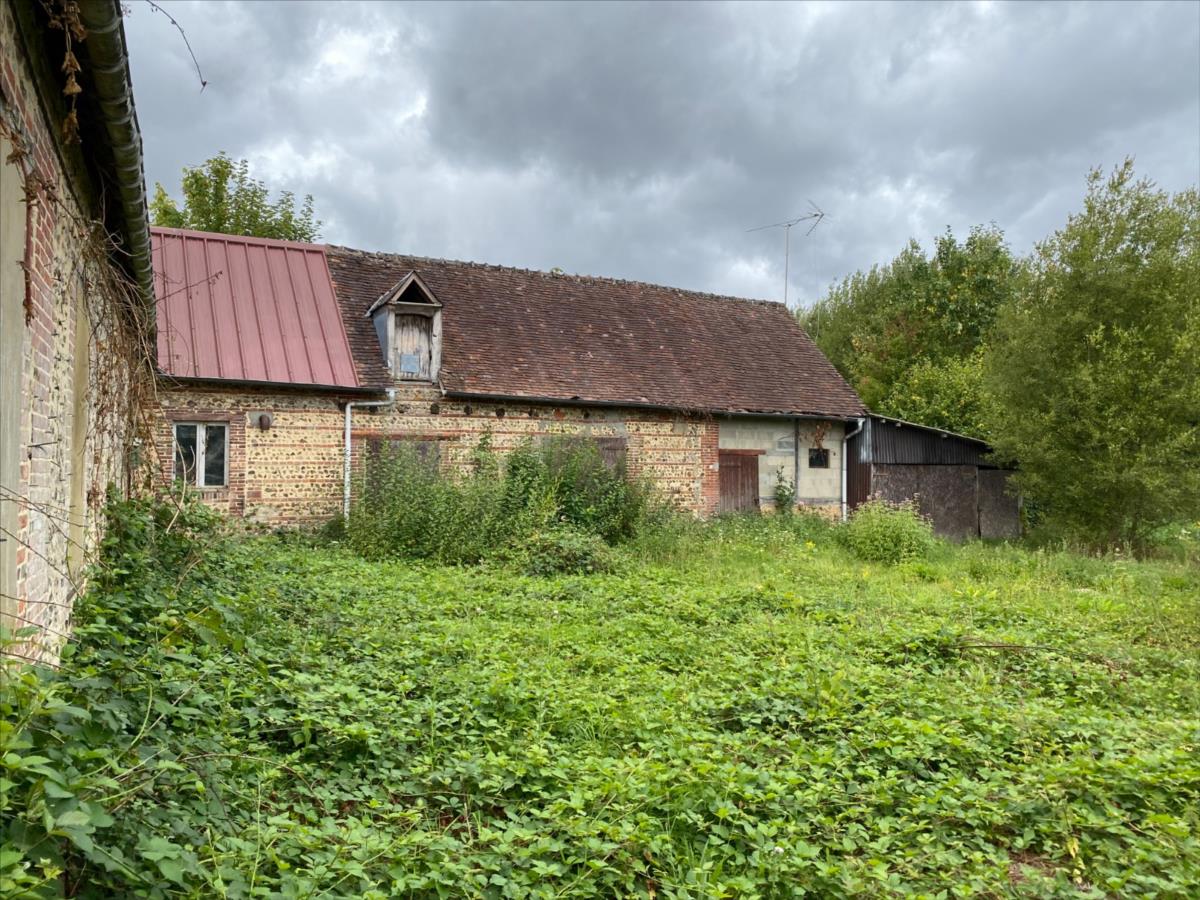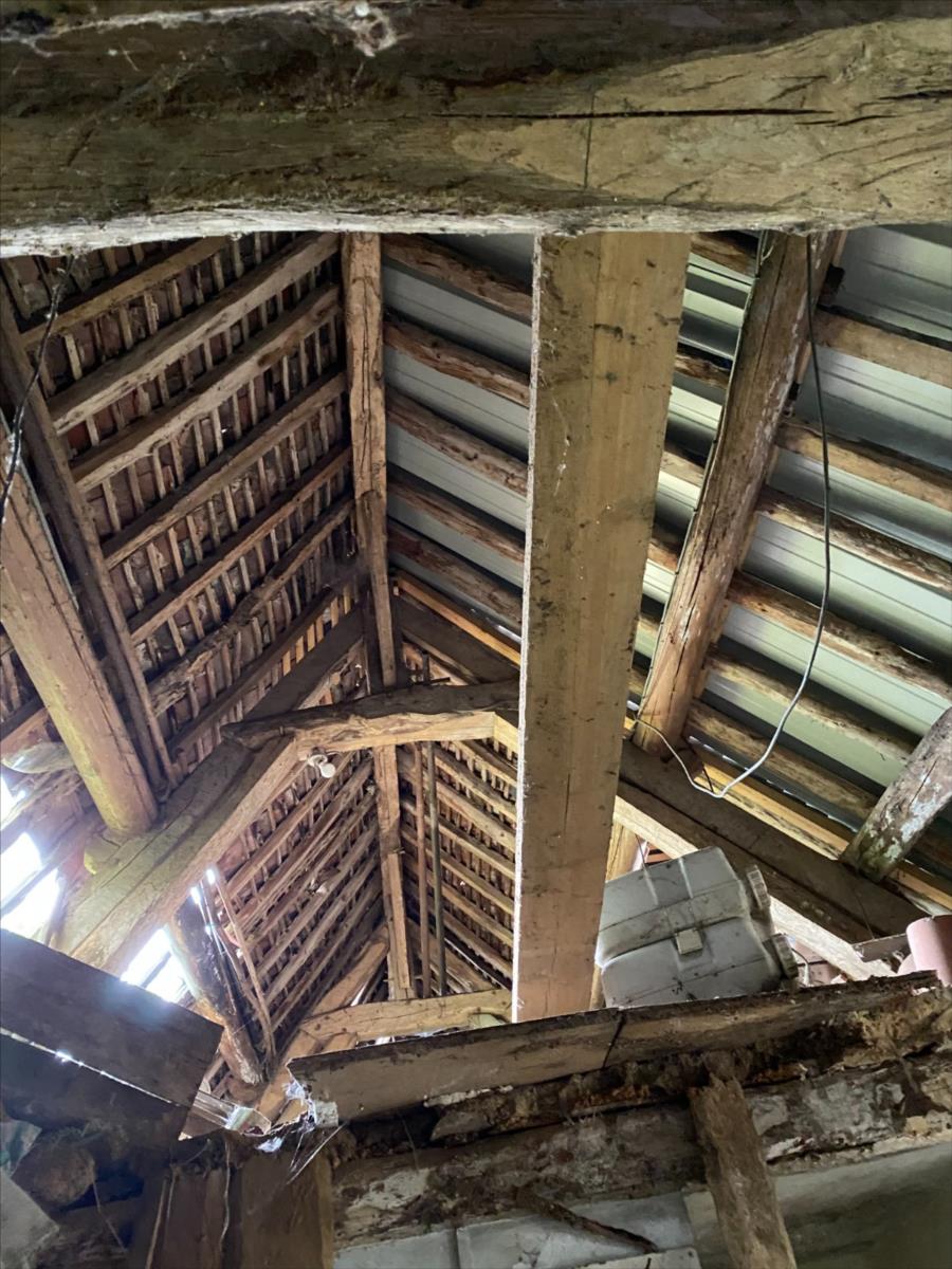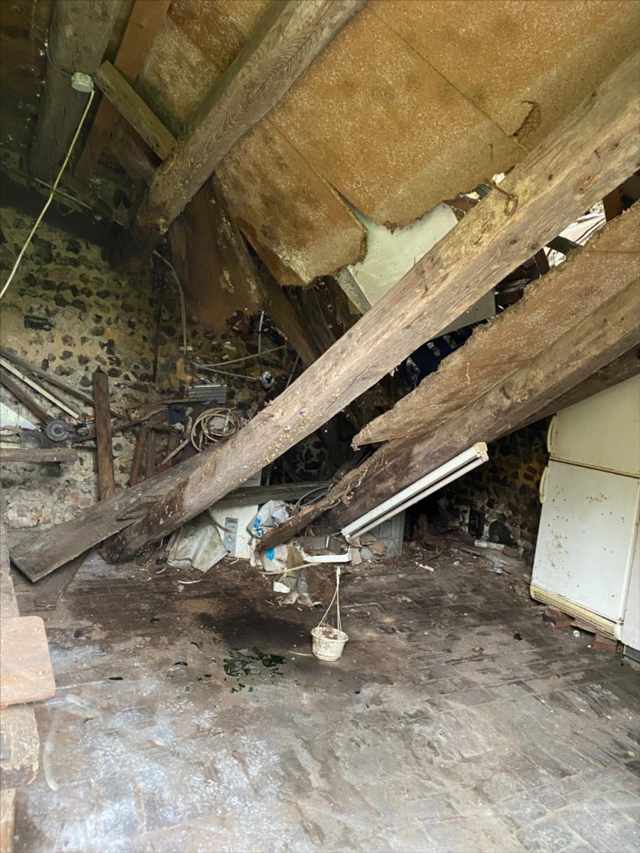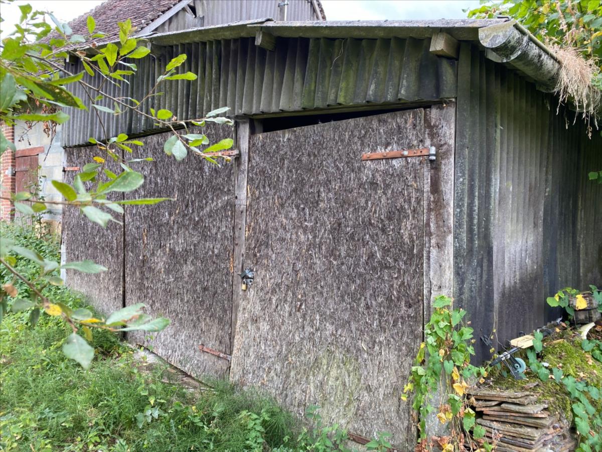 Dépendance en équerre avec une partie de la toiture en très mauvais état dont une partie est effondrée: garage, cave, cellier