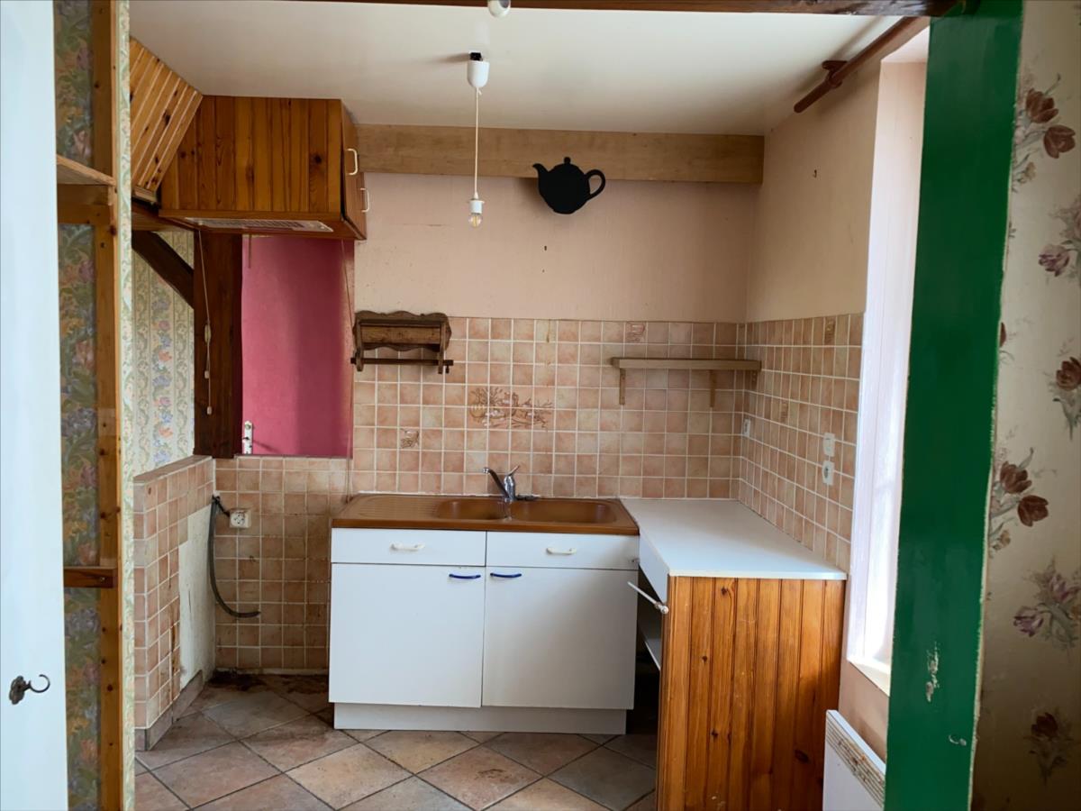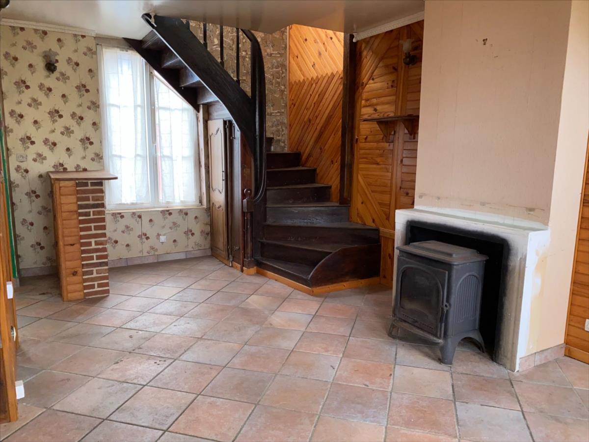 - au RDC: entrée dans séjour avec espace cuisine, salon avec poêle à bois, wc.