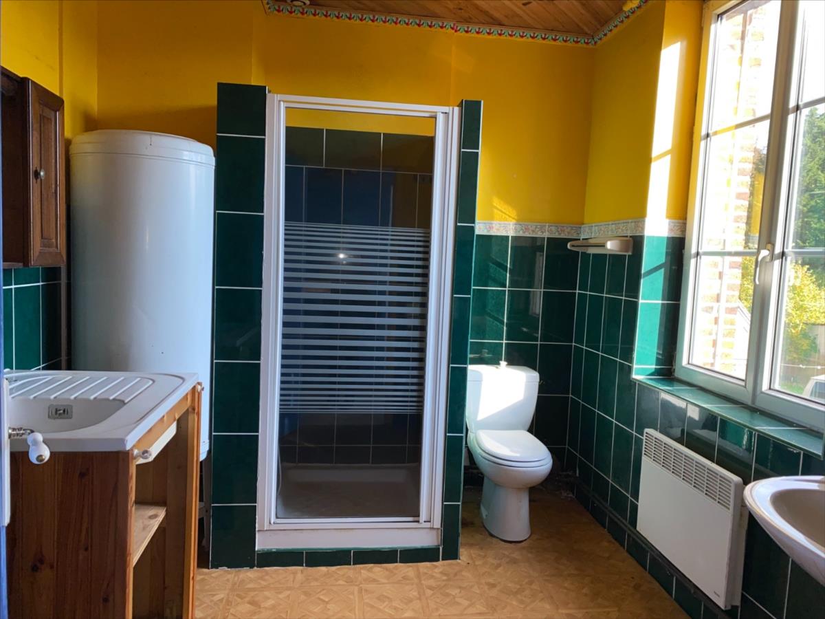 - 1er étage: palier, 2 chambres, salle d'eau avec wc.