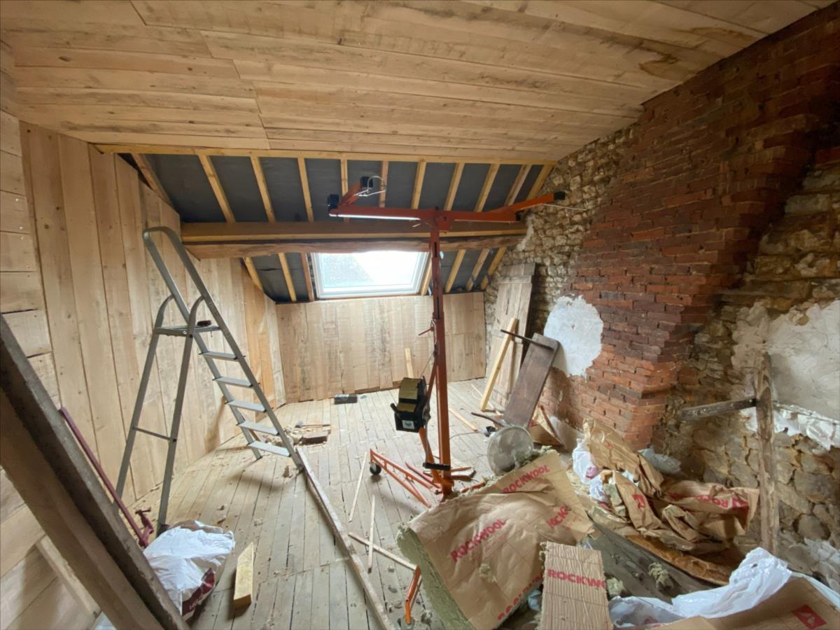 conforme)La façade et la toiture ont été refaites, menuiseries neuves.Isolation, cloisons, électricité et plomberie à faireBeau potentiel