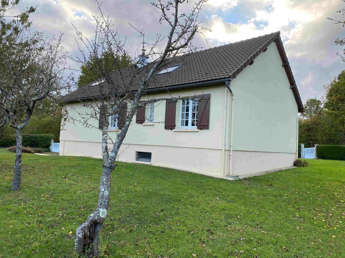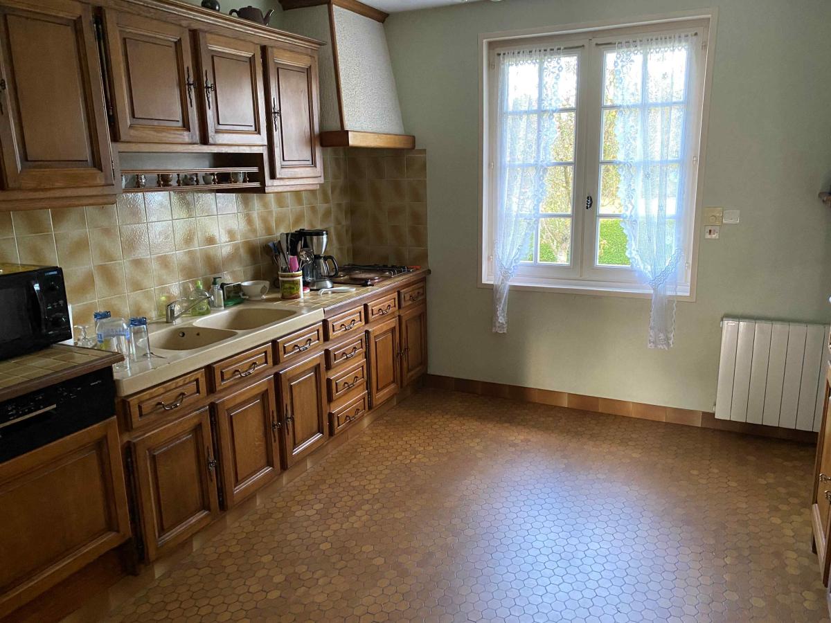PUTANGES LE LAC 3 mns tous commerces: Pavillon en campagne d'environ 110 m² habitable sur 8 330 m² de terrain, comprenant au rez-de-chaussée, entrée, couloir, cuisine aménagée, séjour avec cheminée, wc, salle de bains, trois chambres, à l’étage palier, une chambre, grenier, sous sol complet à usage de garage, cave, buanderie, cabanon de jardin, 2 petits bâtiment annexes, chauffage électrique et cheminée, double vitrage, prix 168 200€ honoraires de négociation à la charge du vendeur.