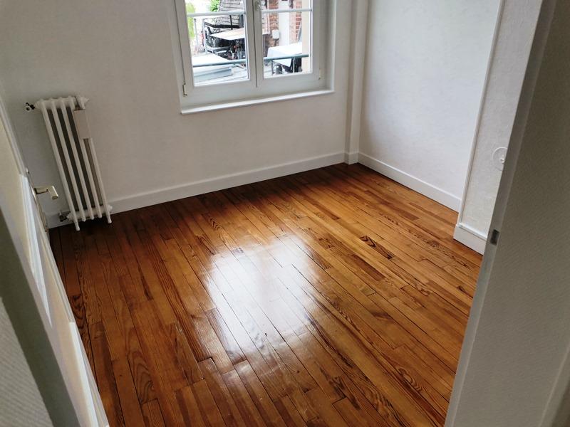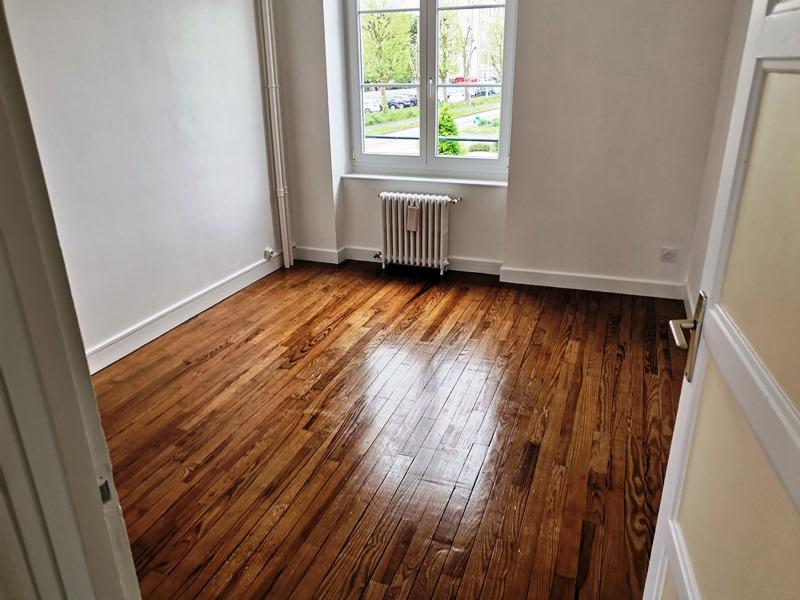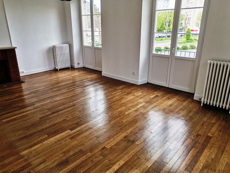 FALAISE: Au pied du château: Appartement d'environ 90 m² situé au 1er étage avec balcon, comprenant entrée-couloir, cuisine aménagée, séjour, trois chambres, salle d’eau, wc, dressing, cave en sous-sol, chauffage individuel gaz de ville, double vitrage, loyer 750 € part de frais de bail 570 €