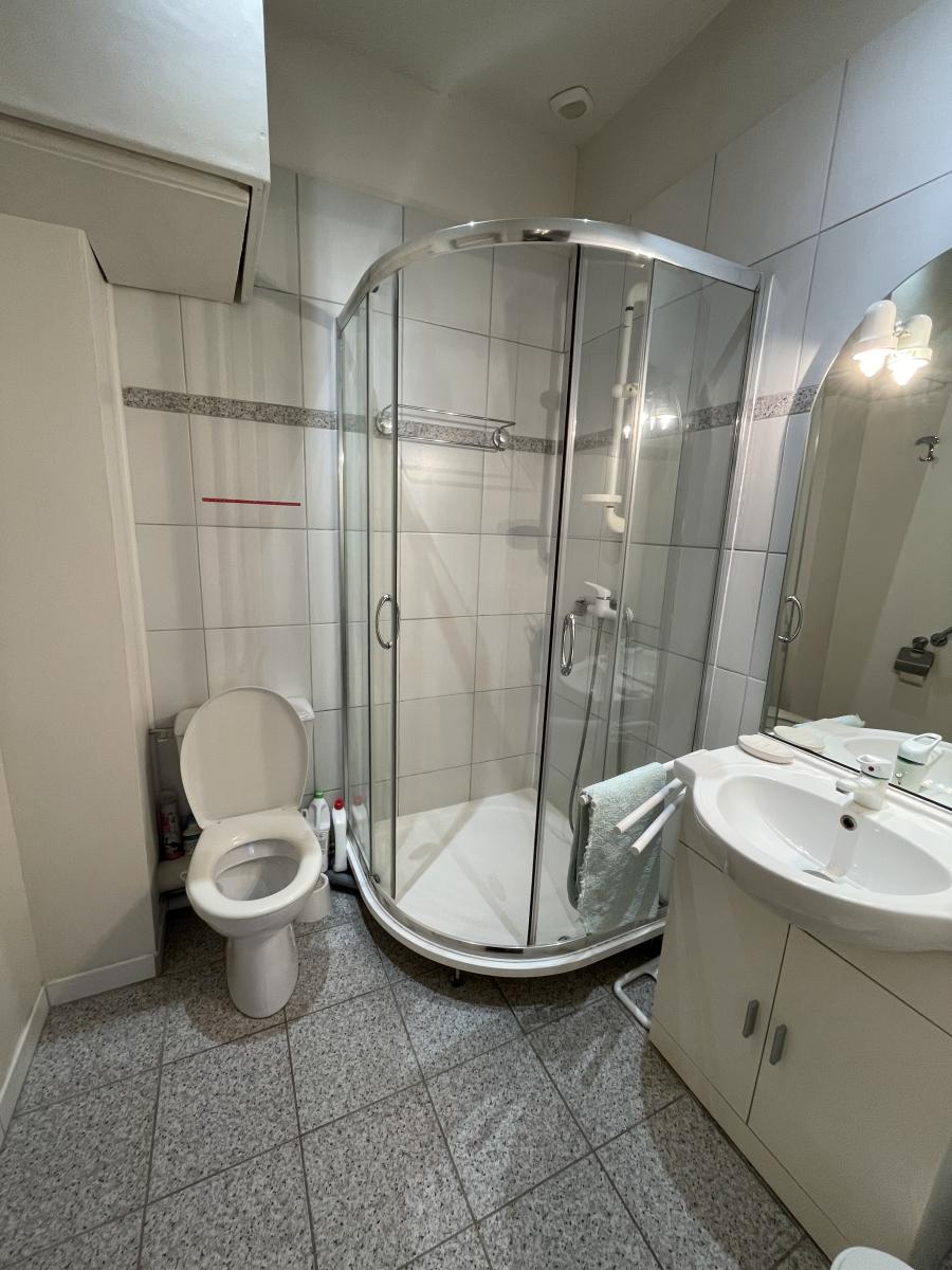 Il offre une cuisine séparée équipée avec réfrigérateur, mini-four, micro-ondes, plaques, hotte et lave-linge, une vaste pièce de vie avec placards, coin repas et espace nuit, une salle d'eau avec WC et sèche-serviettes.