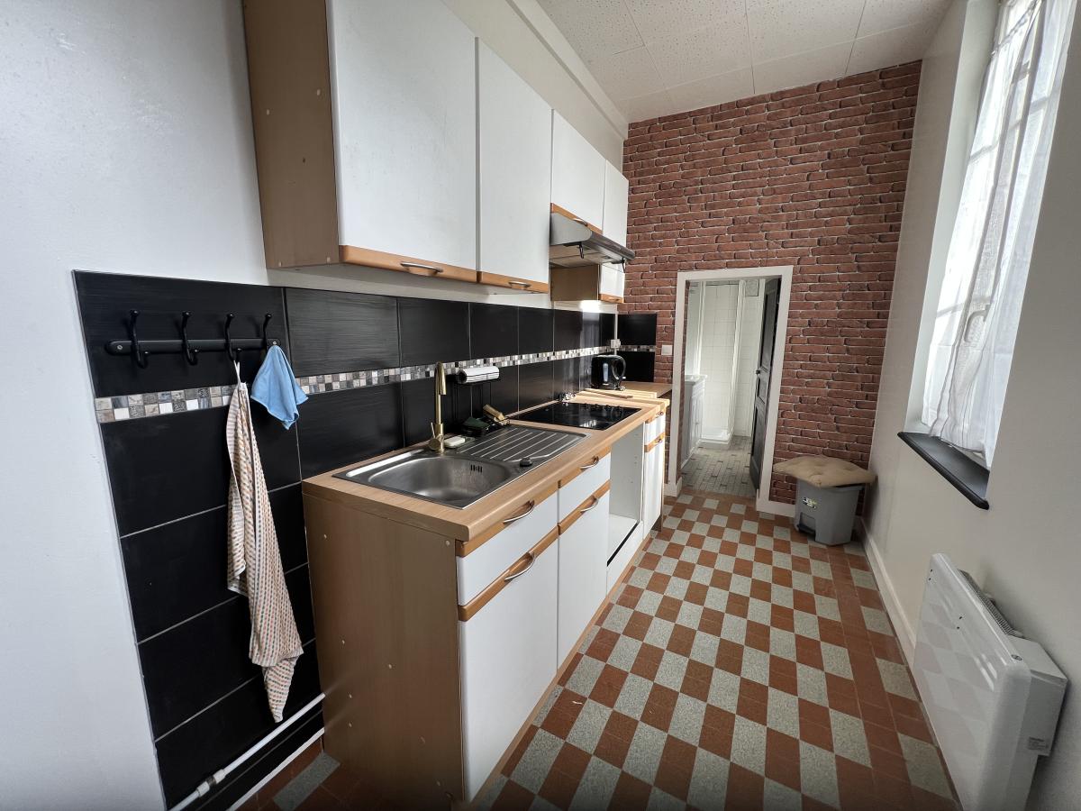LA FERTE MACE, immeuble situé en ville, accès par porche commun avec l'immeuble voisin, comprenant :