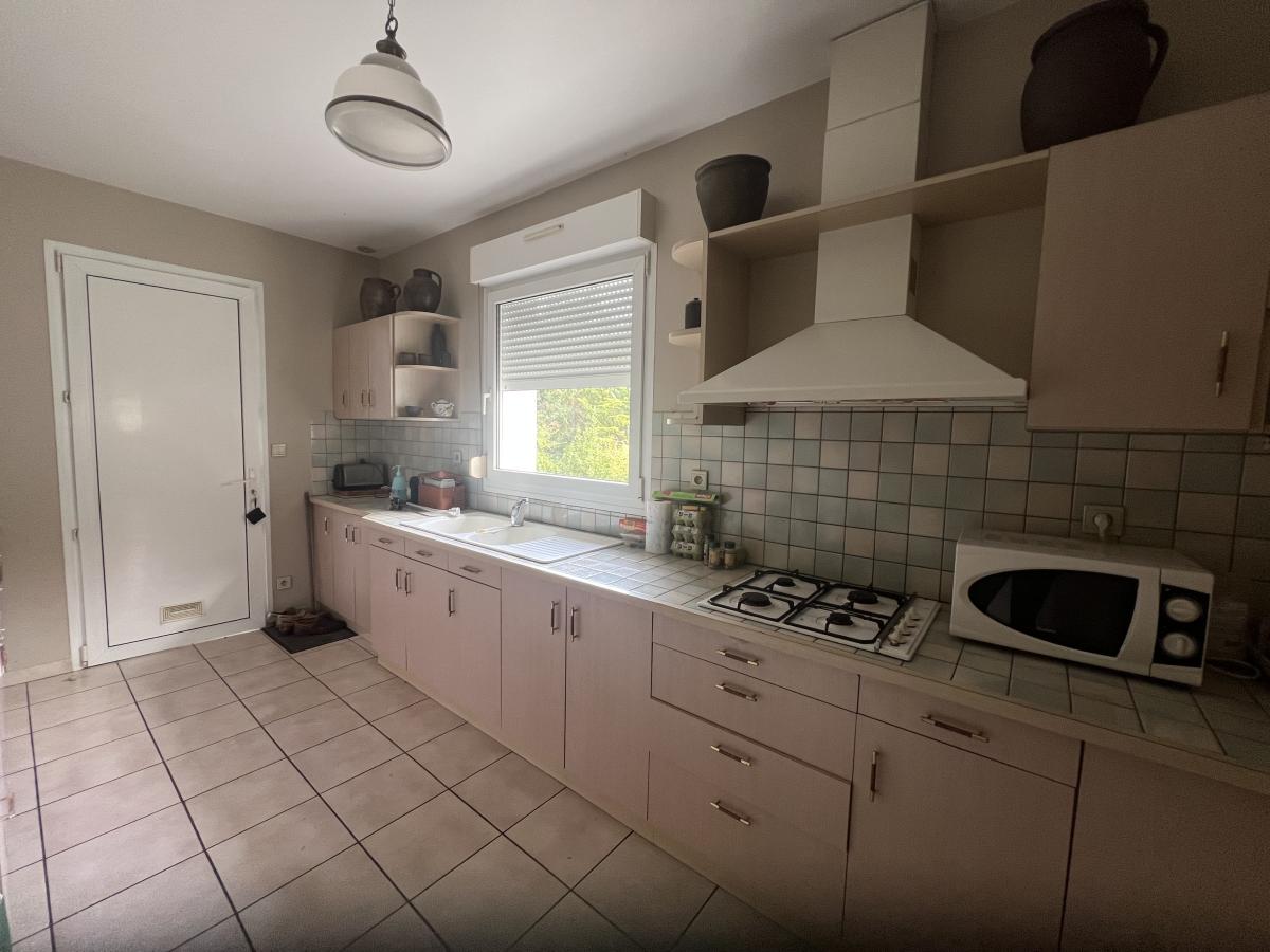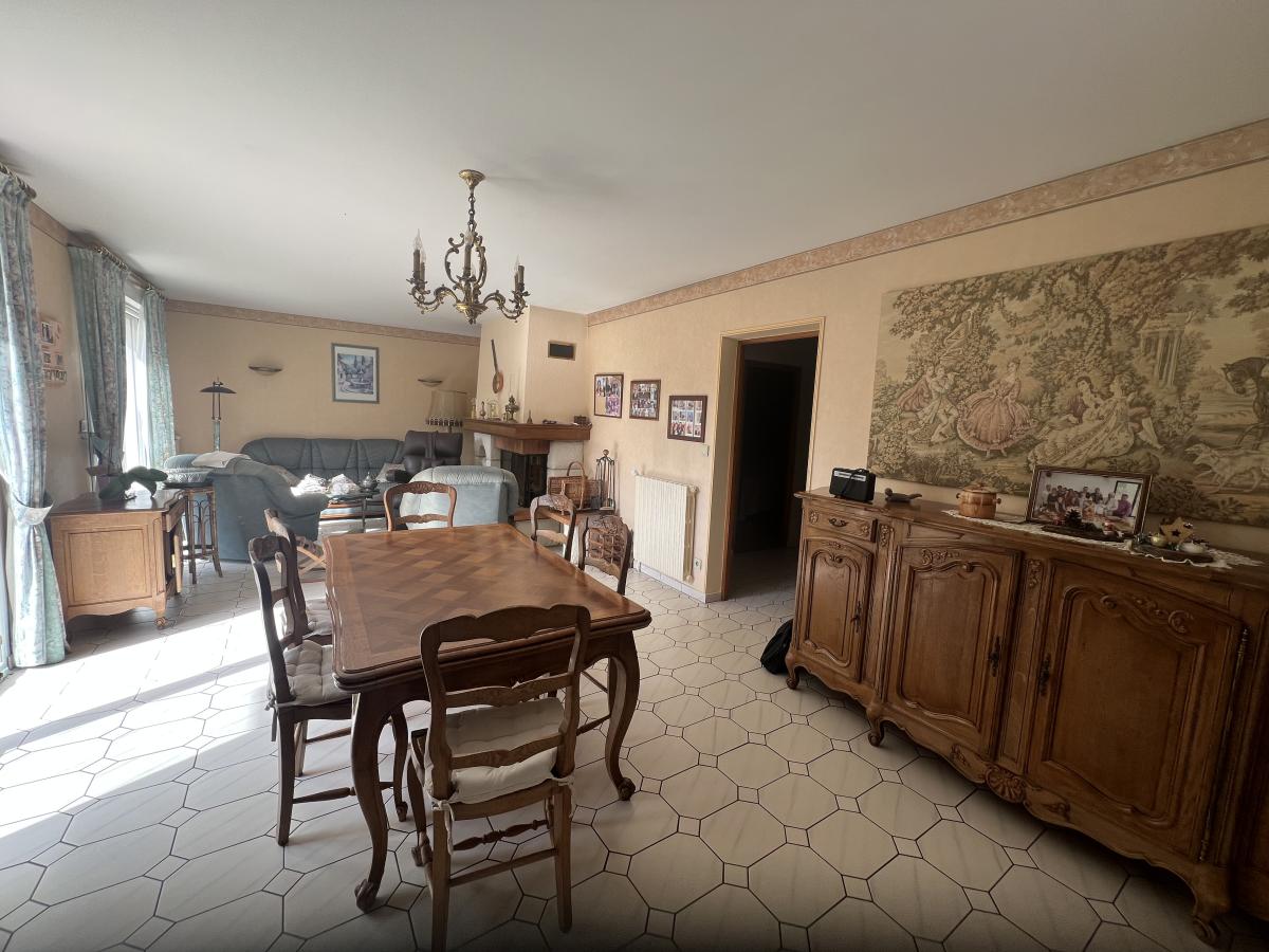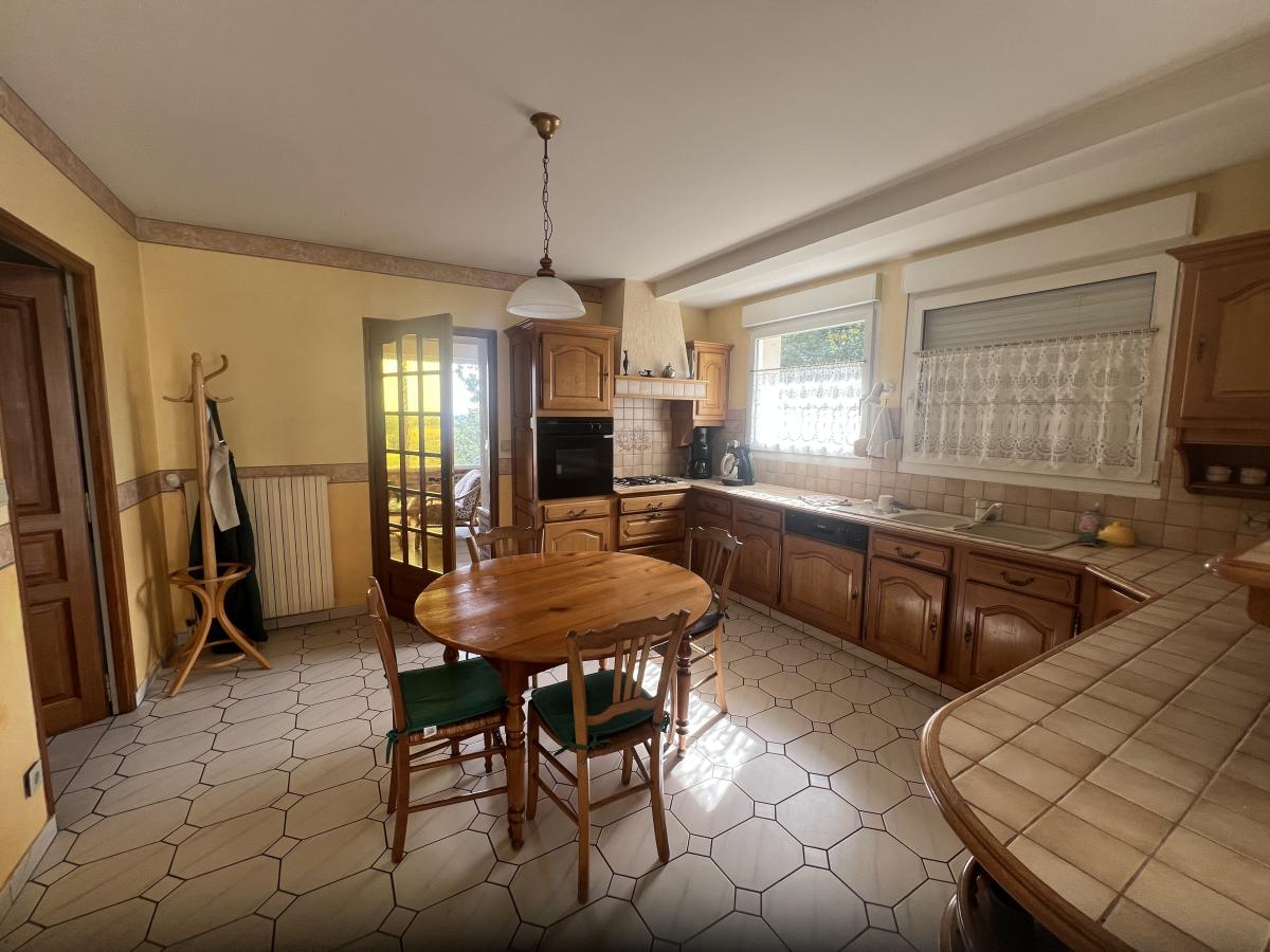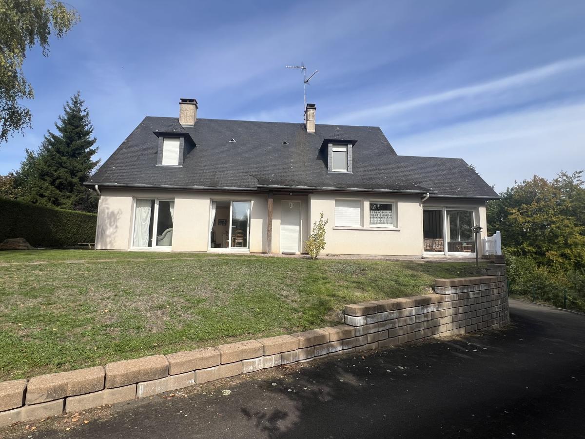 BAGNOLES DE L'ORNE, dans un environnement très calme avec vue dégagée, maison comprenant de plain-pied : séjour/salon avec cheminée foyer fermé, cuisine aménagée et équipée, grande arrière cuisine, véranda offrant beau panorama sur la campagne, dégagement avec placard, deux chambres dont une avec salle d'eau, salle de bains, WC.