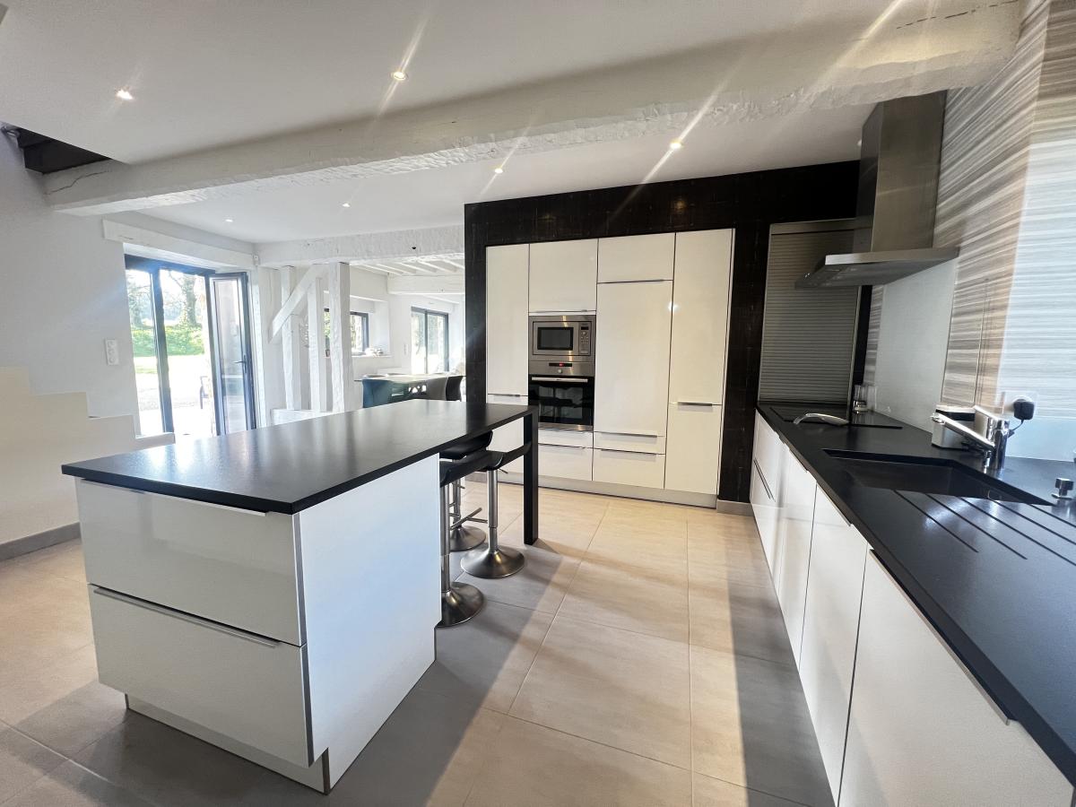 . Maison de 195 m² comprenant au RDC : vaste séjour/salon avec poêle à bois, cuisine équipée, cellier, chambre, autre chambre avec salle de bains et dressing, 2 WC.