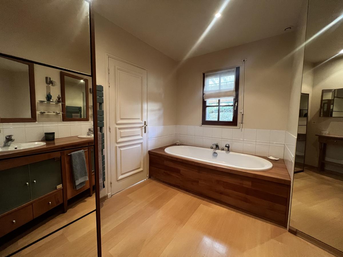 A l'étage : grand palier, chambre, salle de bains, WC, autre chambre avec salle d'eau privative et WC. Partie de grenier.