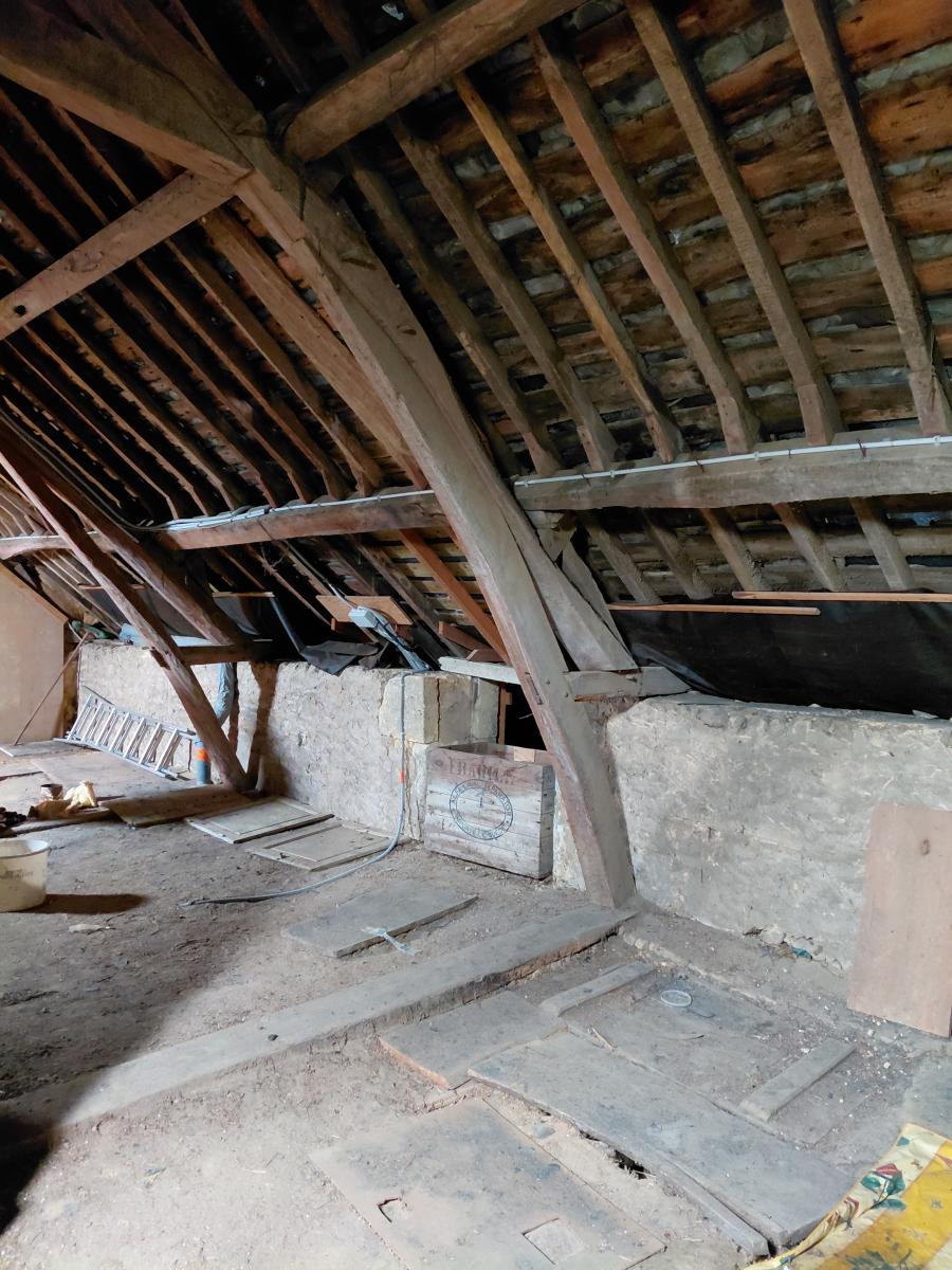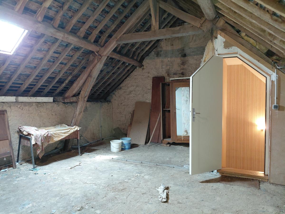 À l’étage, un grenier sur toute la surface, déjà accessible par un escalier, offre de nombreuses possibilités d’aménagement.