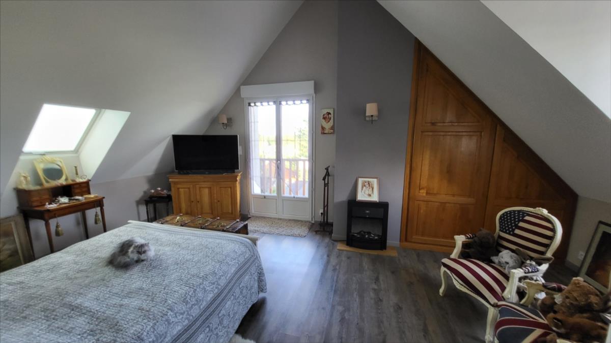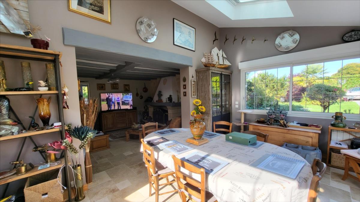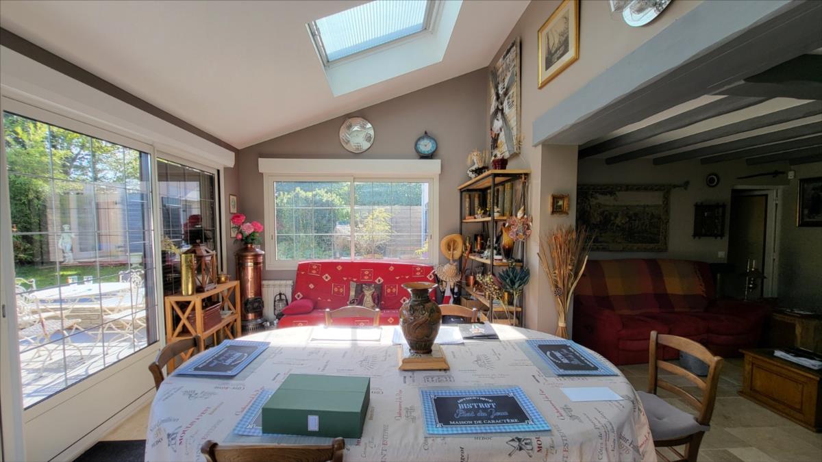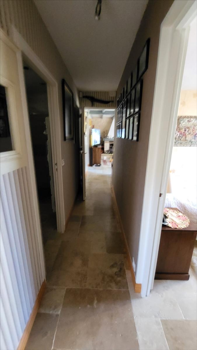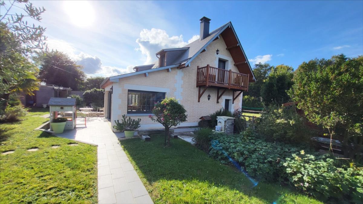 Belle maison rénovée avec goût comprenant : cuisine aménagée et équipée, wc supendus,  séjour avec cheminée, couloir desservant : deux chambres et salle de douche à l'italienne et radiateur sèche-serviettes, buanderie avec éléments de rangement et vidange lave-linge; dégagement avec escalier qui mène au 1er étage : grande pièce palière pouvant servir de couchage, une grande chambre avec balcon, salle de bains avec baignoire balnéo et douche, cabinet de toilettes; dalles de travertin au rez-de-chaussée. Chauffage électrique avec commande à distance. Double vitrage avec volets électriques centralisés. Maison isolée de l'extérieur; toiture refaite ainsi que l'intérieur; Garage, et deux abris en bois avec électricité. Beau jardin paysagé avec bassin de 1000 litres. Alarme.