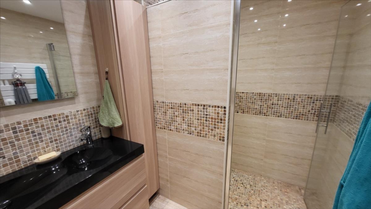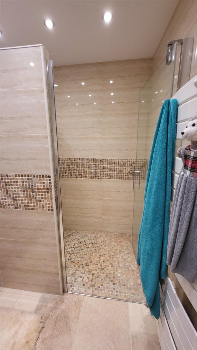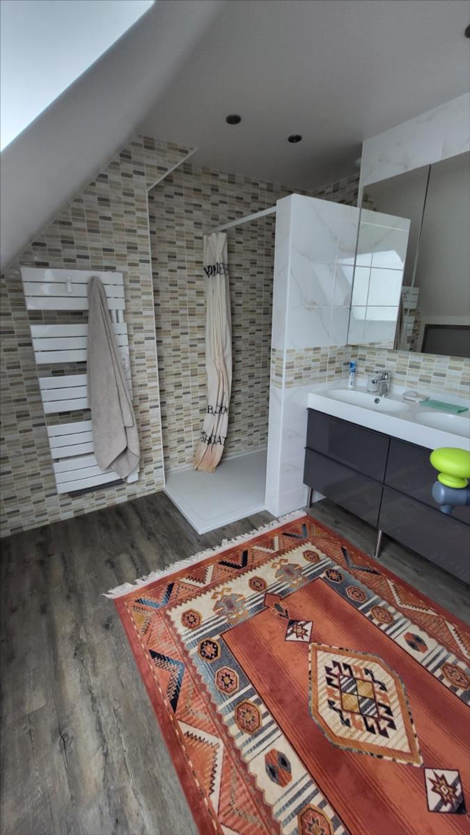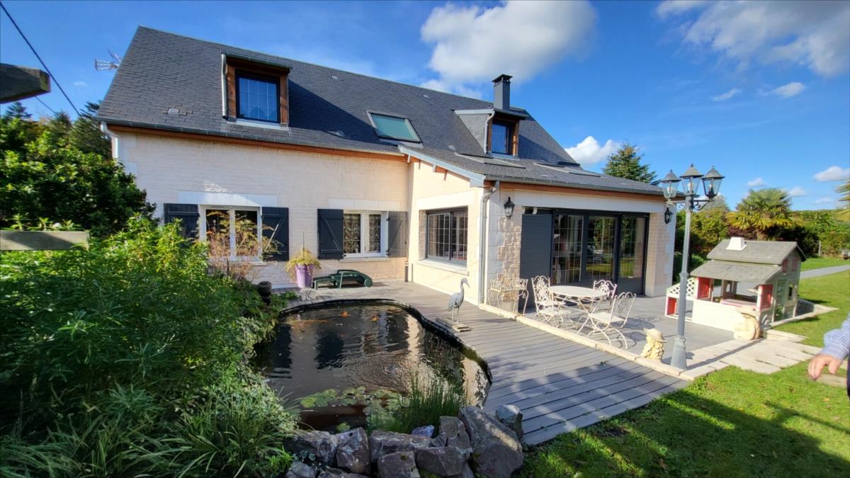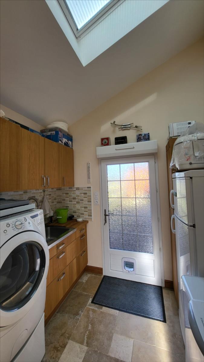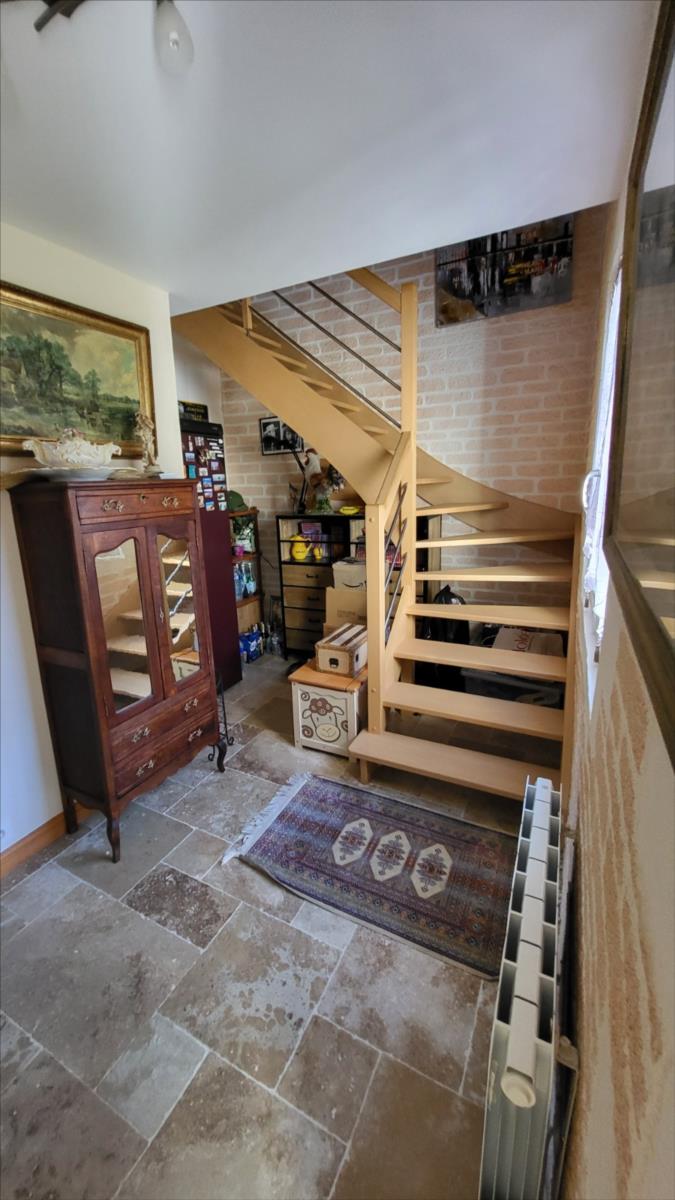 Belle maison rénovée avec goût comprenant : cuisine aménagée et équipée, wc supendus,  séjour avec cheminée, couloir desservant : deux chambres et salle de douche à l'italienne et radiateur sèche-serviettes, buanderie avec éléments de rangement et vidange lave-linge; dégagement avec escalier qui mène au 1er étage : grande pièce palière pouvant servir de couchage, une grande chambre avec balcon, salle de bains avec baignoire balnéo et douche, cabinet de toilettes; dalles de travertin au rez-de-chaussée. Chauffage électrique avec commande à distance. Double vitrage avec volets électriques centralisés. Maison isolée de l'extérieur; toiture refaite ainsi que l'intérieur; Garage, et deux abris en bois avec électricité. Beau jardin paysagé avec bassin de 1000 litres. Alarme.