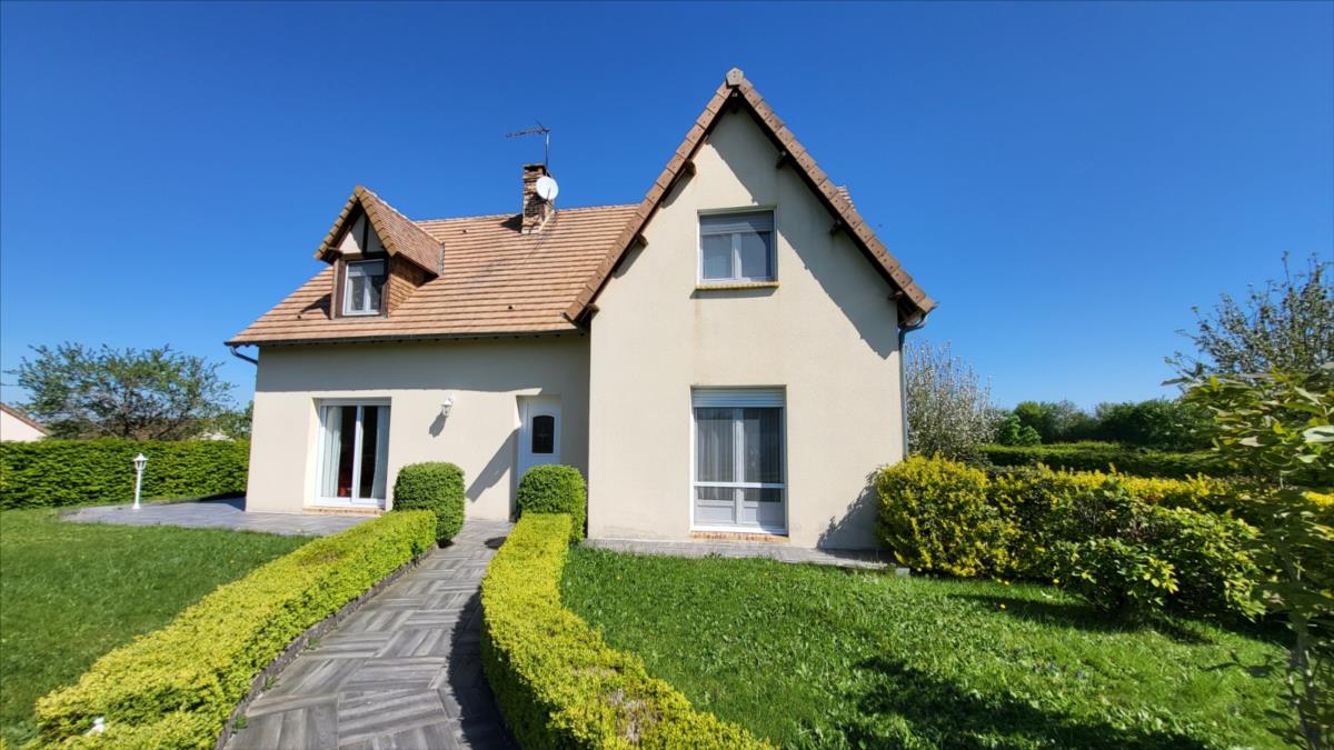 Dans un quartier au calme, et proche de quelques commerces, belle maison d'environ 135 m² bien entretenue comprenant : belle entrée avec escalier, séjour avec cheminée équipée d'un insert ouvert sur cuisine aménagée et équipée (réfrigérateur, hotte aspirante, plaque de cuisson), une chambre avec salle de douche à l'italienne, wc séparés, bureau ou chambre avec placards ; à l'étage : pièce-mezzanine surplombant l'entrée, trois chambres, wc séparés, grande salle de bains avec baignoire et douche), placards et radiateurs sèche serviettes ; chauffage au fioul + cheminée ; Volets roulants; sous-sol complet avec adoucisseur d'eau comprenant buanderie avec point d'eau, garage, cave à vin l'ensemble sur 1030 m² de jardin avec terrasse.