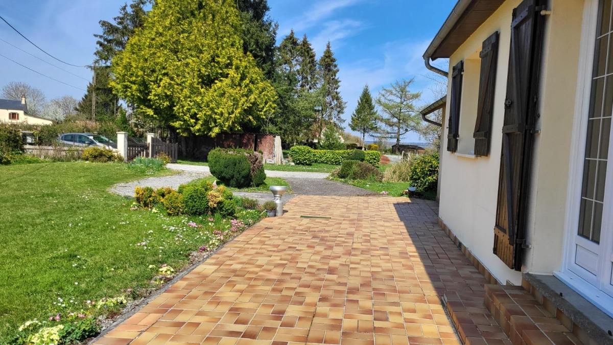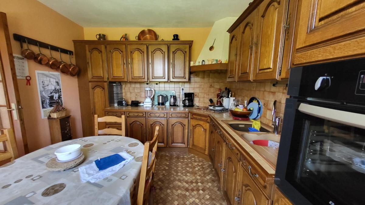 Propriété sur 3ha plats avec dépendances en campagne, au calme. Pavillon de plain-pied bien entretenu : entrée avec placard, séjour avec cheminée équipée d'un insert, cuisine aménagée rustique, couloir desservant trois chambres, salle de bains, wc séparés. Garage attenant avec point d'eau. Trois dépendances dont un ancien four à pain. Les informations sur les risques auxquels ce bien est exposé sont disponibles sur le site Géorisques : www. georisques. gouv. fr