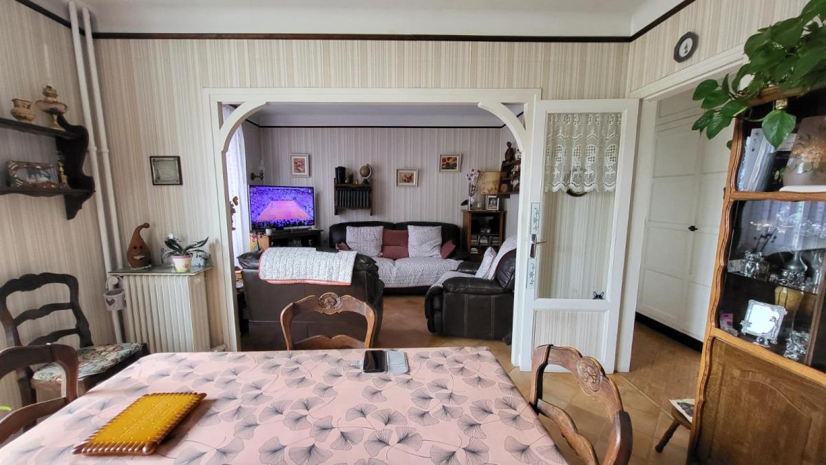 En centre ville avec tous commerces, immeuble comprenant : Au rez-de-chaussée local commercial d'environ 100 m² en bon état comprenant une pièce avec ancienne vitrine, dégagement avec wc et quatre pièces, réserve ; au 1er étage et par accès indépendant : appartement loué d'environ comprenant : au rez-de-chaussée : deux garages cimentés; entrée avec escalier donnant sur le 1er étage : cuisine aménagée, séjour, salle de bains avec wc ; à l'étage : couloir et dégagement avec douche, deux chambres, bureau ; chauffage au gaz de ville; sous-sol avec chaudière au gaz ;