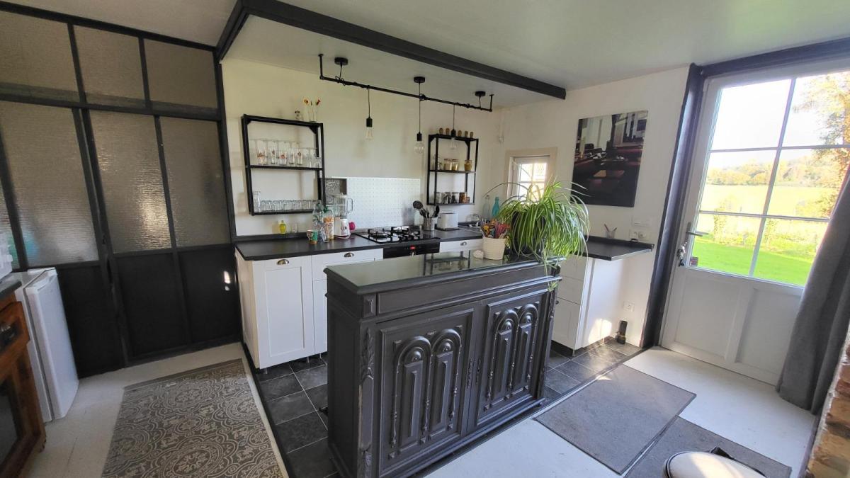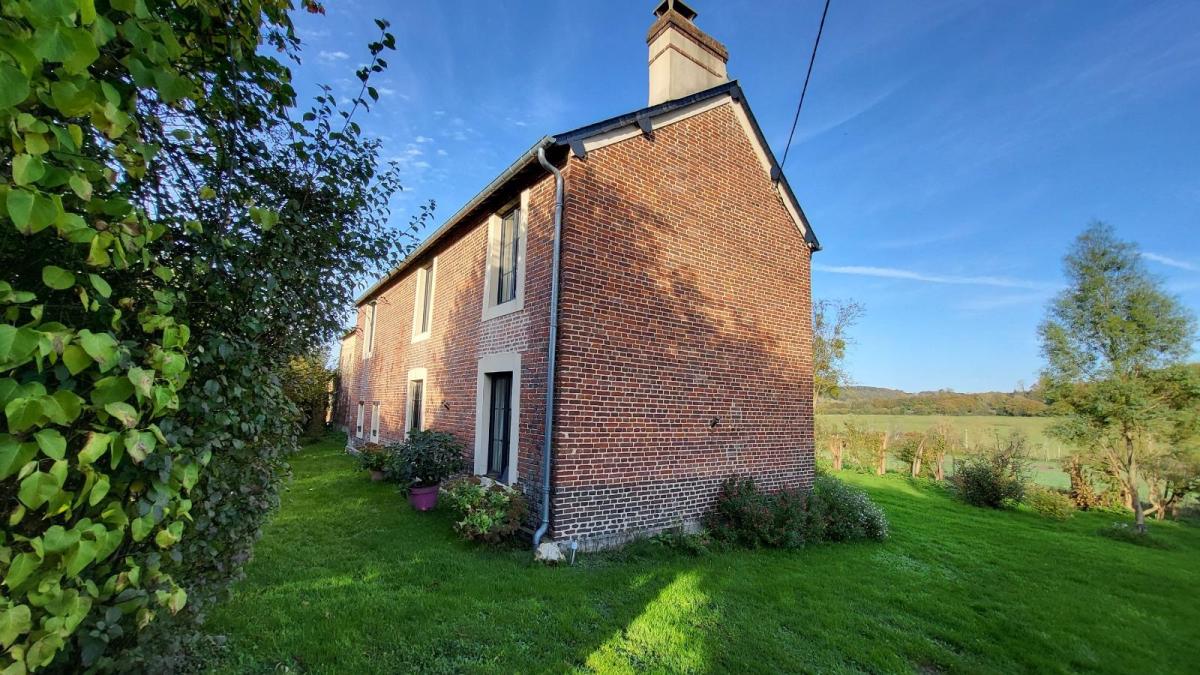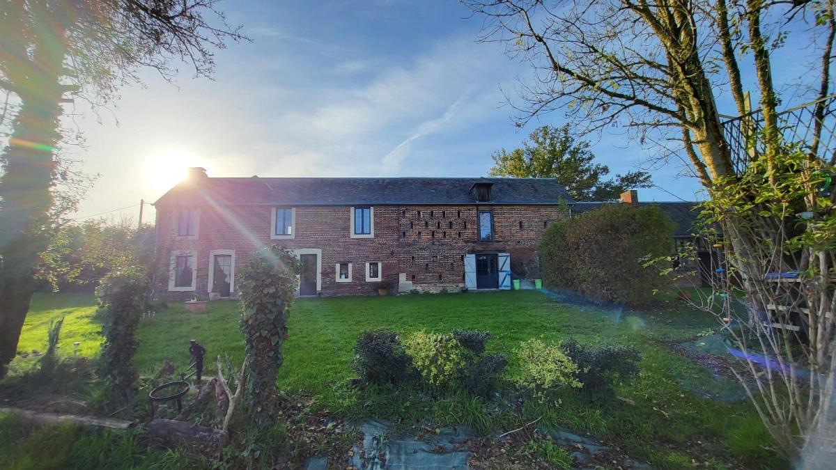 Belle maison en brique rénovée avec goût d'environ 106 m² comprenant : séjour avec cheminée, ouvert sur cuisine aménagée et équipée, buanderie, salle de douche avec wc suspendus et radiateur sèche-serviettes; à l'étage : palier desservant trois belles chambres parquetées, salle de douche avec wc suspendus; Chauffage électrique. Grenier au-dessus avec deux lucarnes. Triple vitrage au rez-de-chaussée ; double vitrage à l'étage. Dépendance attenante avec ancien haloir en brique et autre dépendance attenante en colombage avec cheminée. Logement à consommation énergétique excessive Les informations sur les risques auxquels ce bien est exposé sont disponibles sur le site Géorisques : www. georisques. gouv. fr
